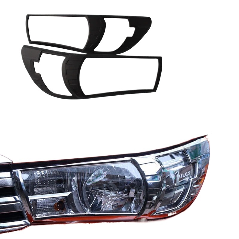 2pcs ABS Black Headlight Lamp Cover Trim for Toyota Hilux Revo 2015-2021