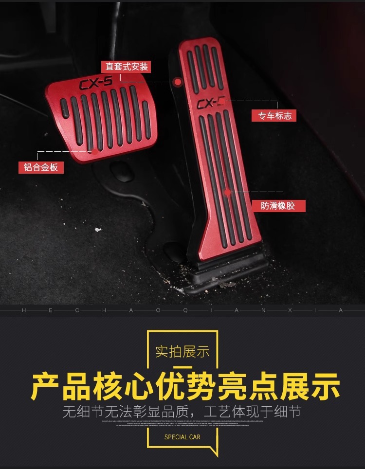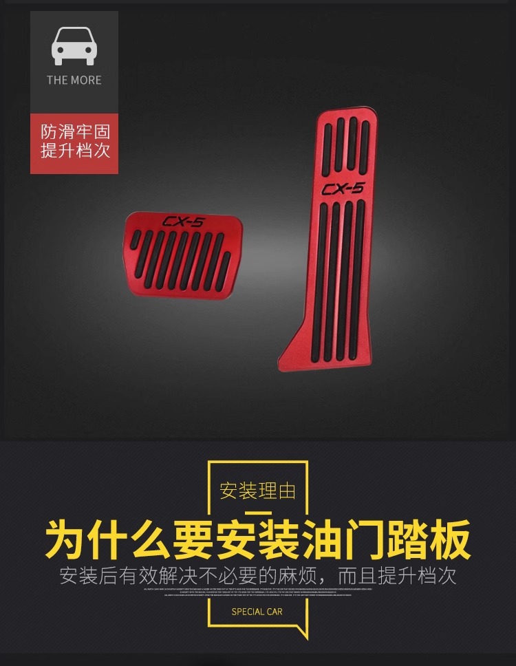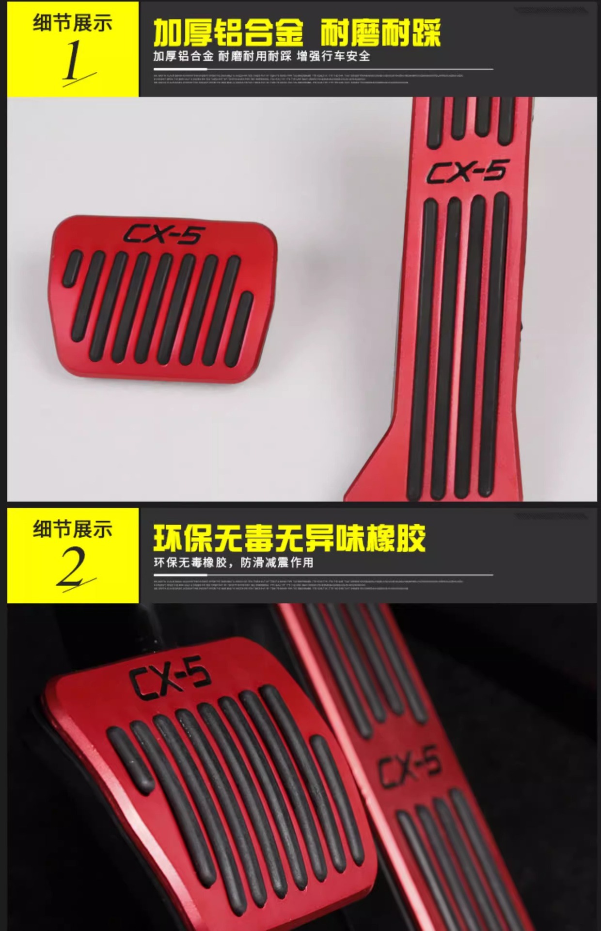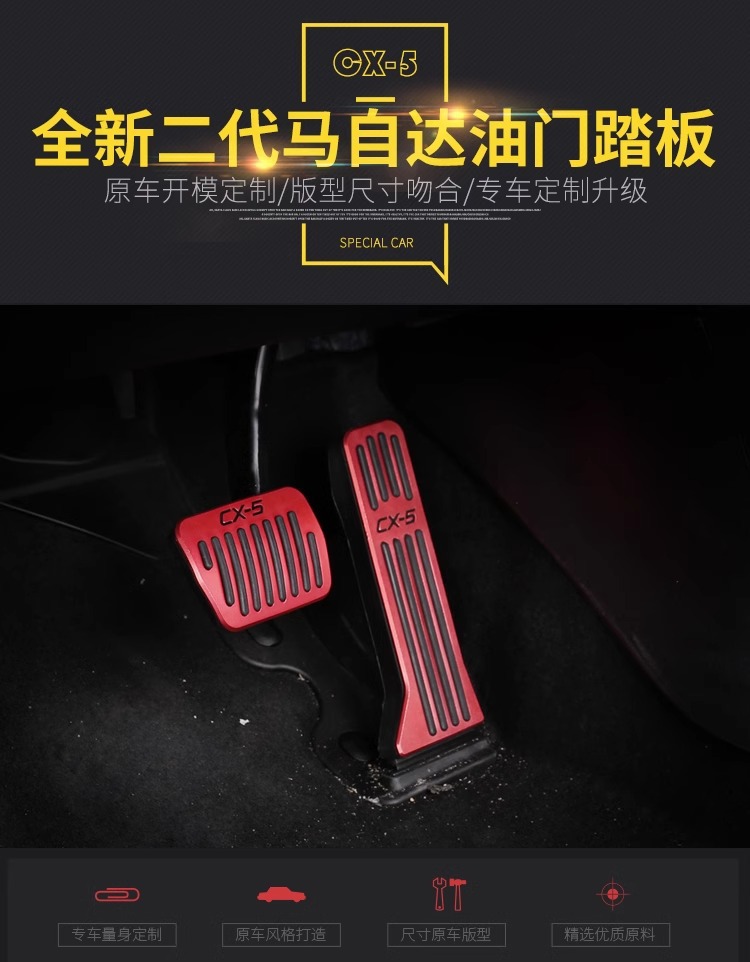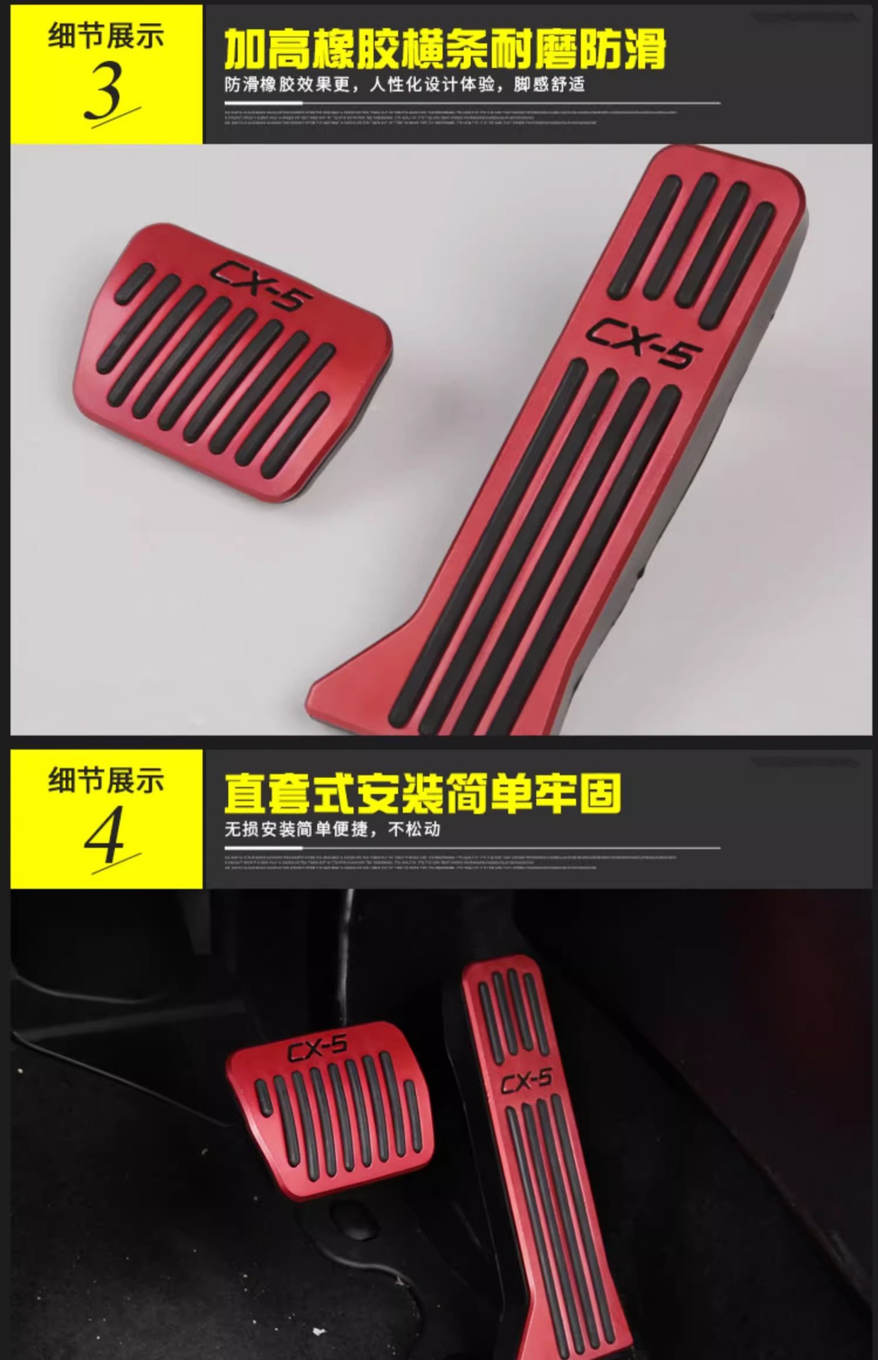 - Direct Fitment: A perfect replacement for Accelerator and Brake Pedals. Compatible with Mazda CX-5 2017-2024 AT Models. No modification is needed.
