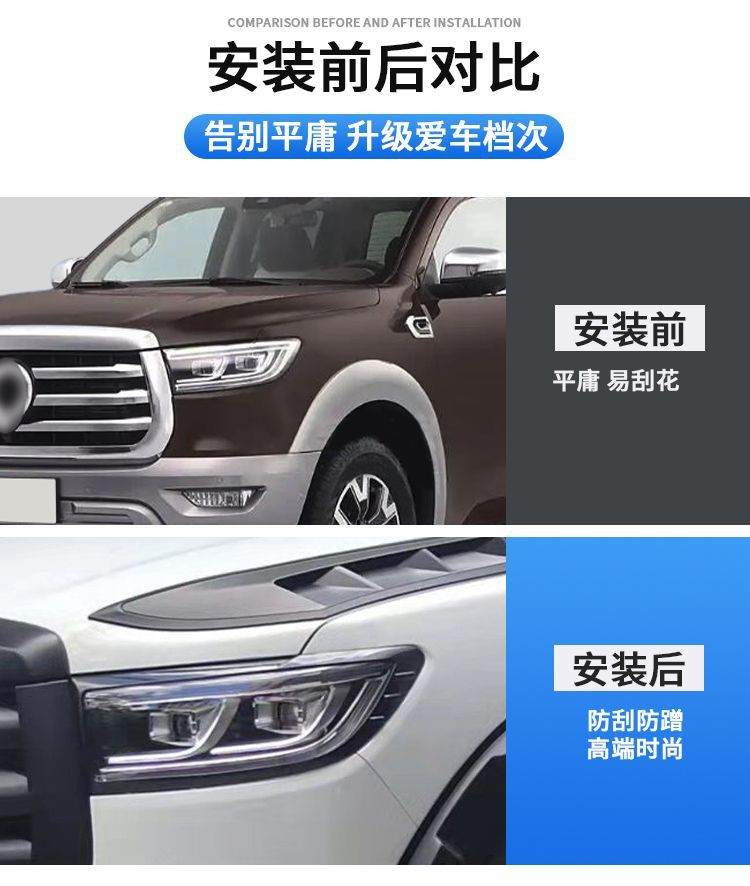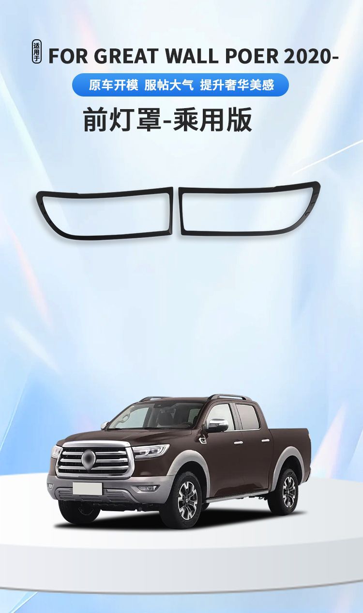 2pcs Black ABS Headlight Cover Trim for Great Wall Poer 2020- Headlight Eyebrows