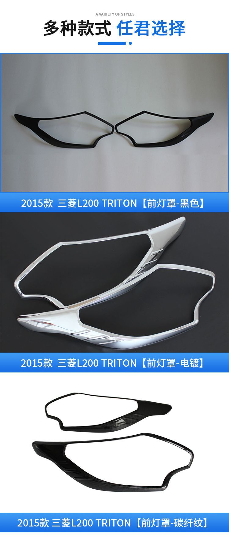 2pcs Black Headlight Trim Covers for Mitsubishi L200 Triton 2015-2018