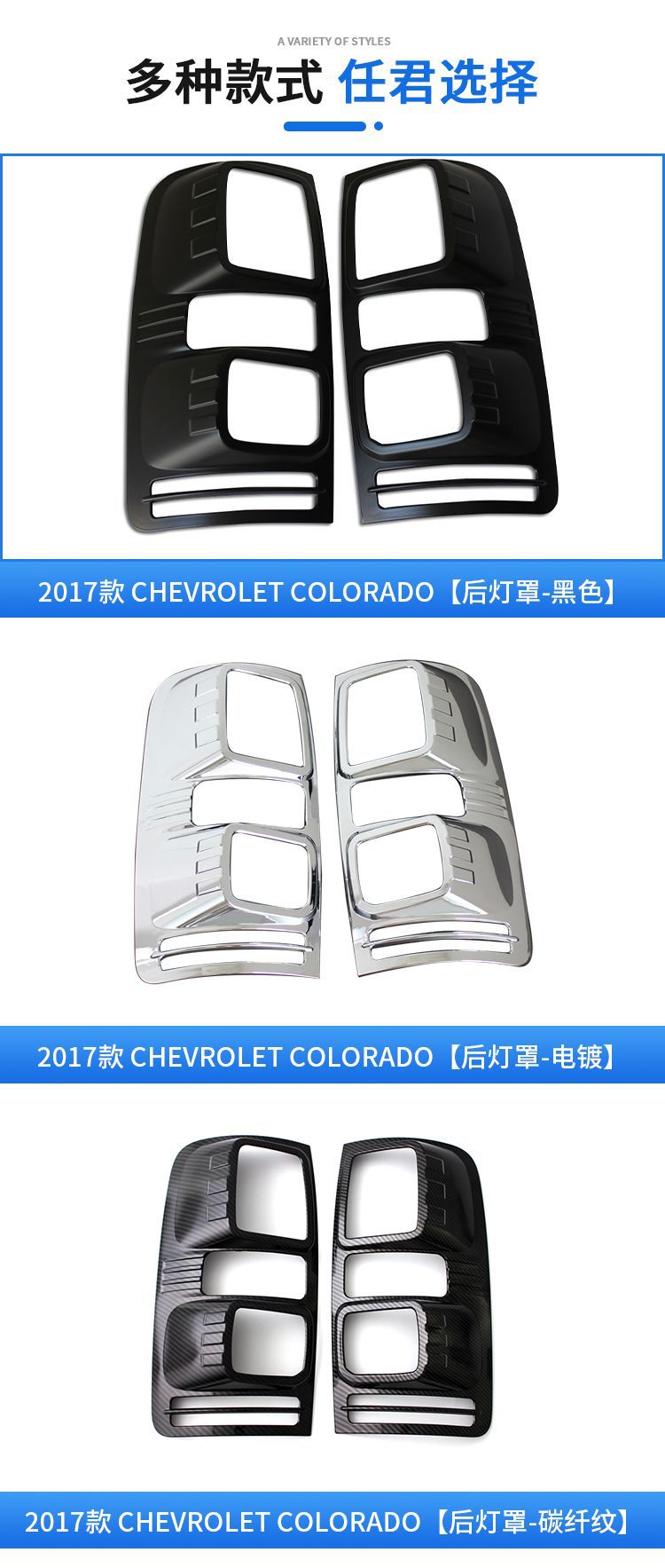 2pcs Black Tail Light Bezels Covers for Chevrolet Colorado 2017