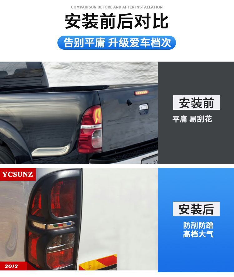 - Performance-Driven Design: Designed specifically for Toyota Hilux Vigo 2011-2014, these covers enhance the vehicle’s aesthetic while protecting the tail lights.