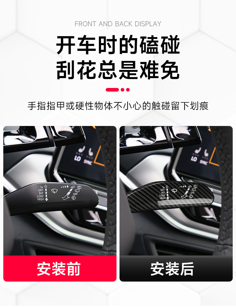 - Performance-Driven Design: Designed specifically to cover and decorate the interior wiper and turn signal stalks, enhancing the visual appeal of your vehicle’s interior without affecting functionality.