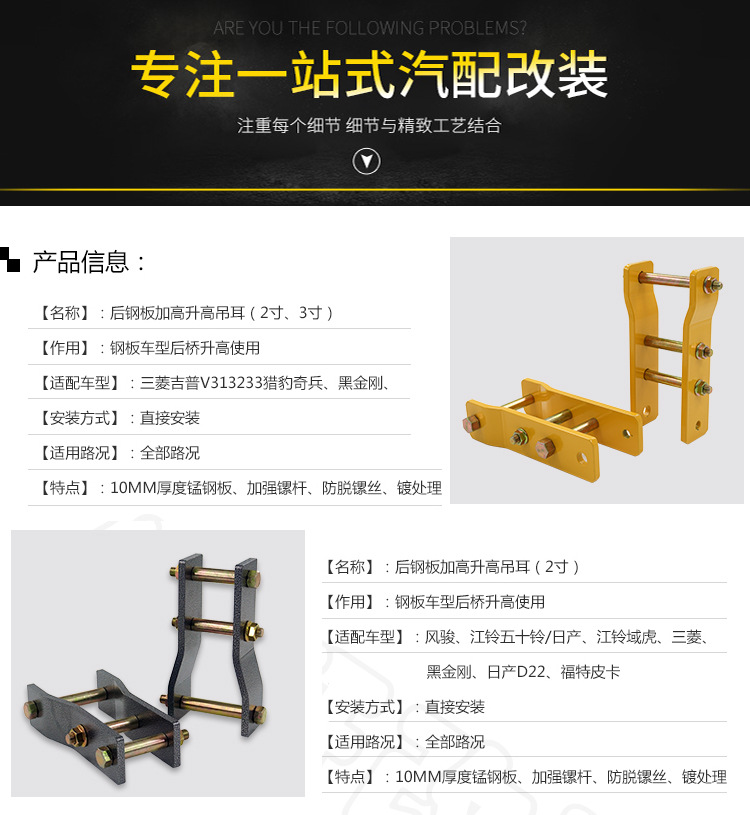 - Direct Fitment: A perfect replacement for Foton F22 Vigo and JAC Shuailing T6 pickup trucks. Designed specifically for front and rear suspension height adjustment.