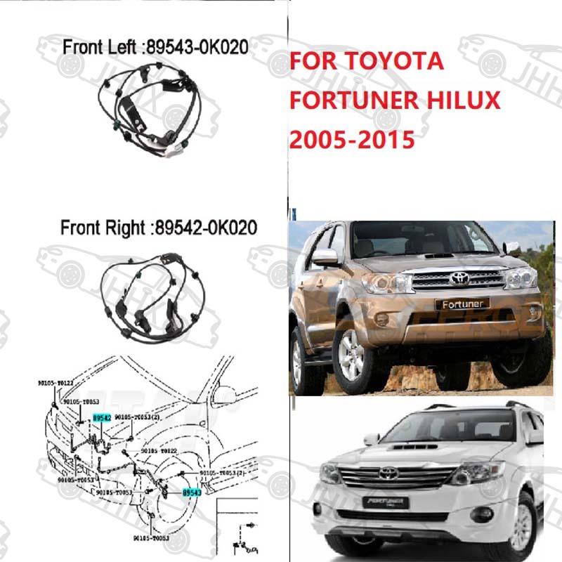 2pcs Front ABS Wheel Speed Sensor for Toyota Fortuner Hilux 2005-2015, Parts 89543-0K020 & 89542-0K020