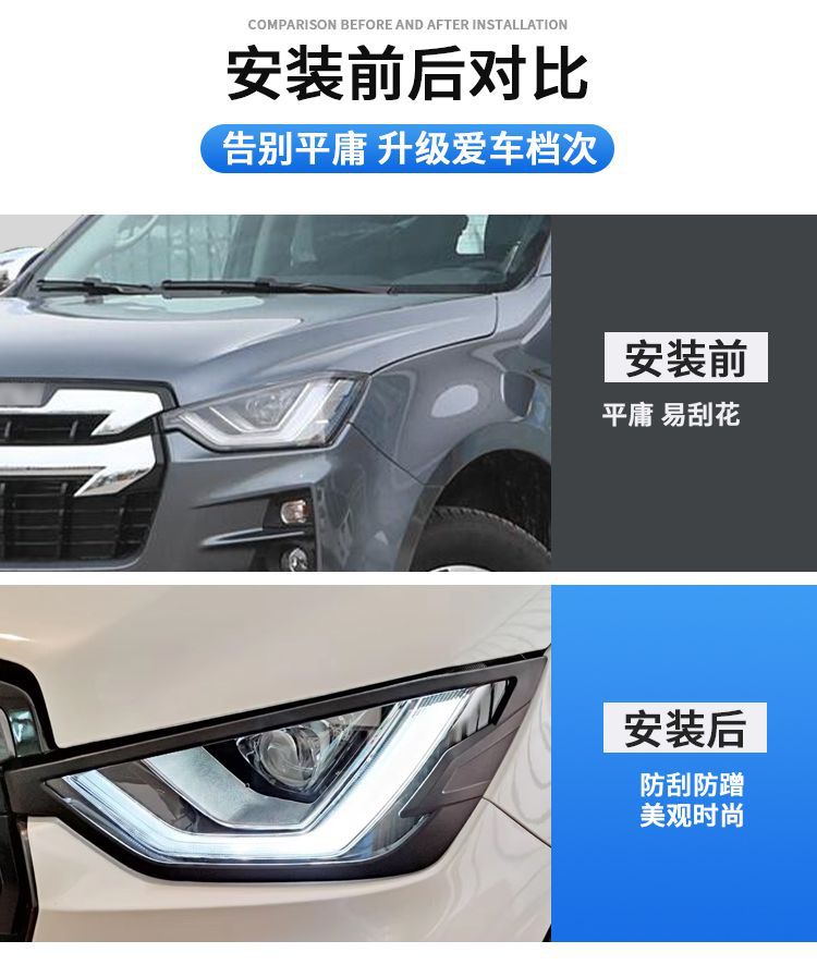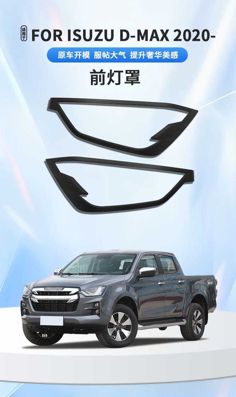 2pcs Front Headlight Covers Headlamp Trim Bezel in Black for Isuzu D-MAX 2020