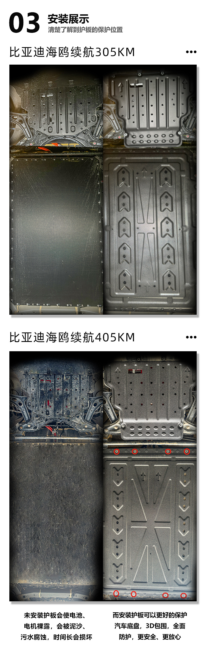 - Direct Fitment: A perfect replacement for the original underbody protection. Compatible with BYD Seagull 2023-2025, 305KM/405KM range models. Includes protection for front motor and battery.