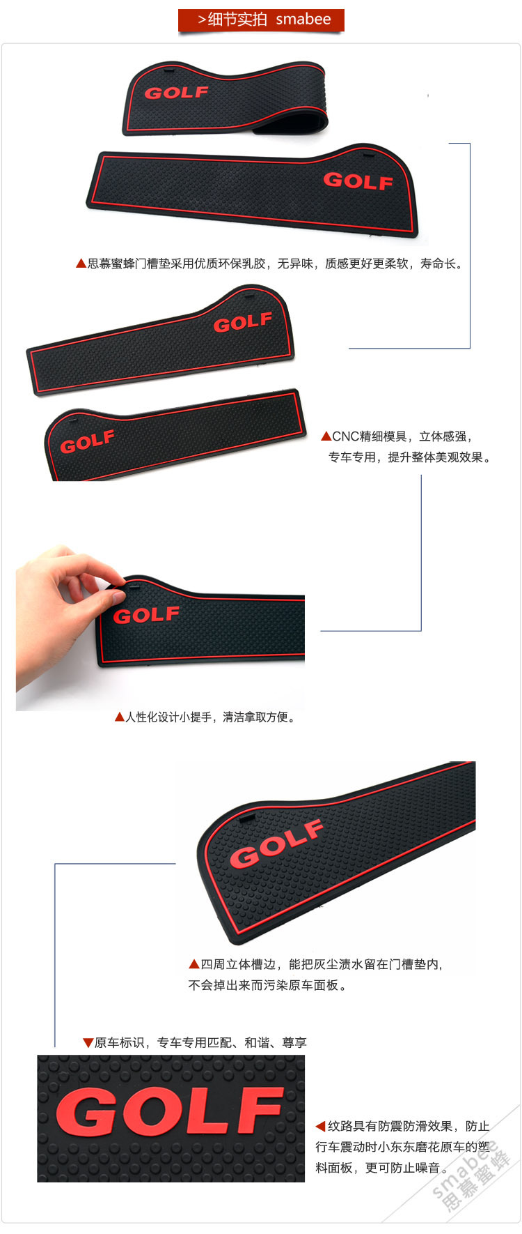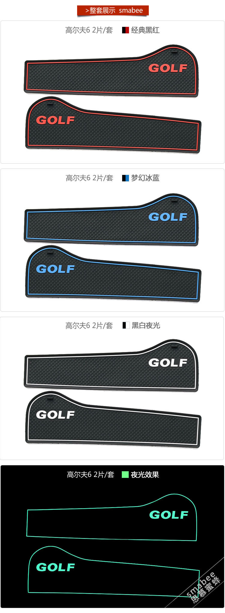 2pcs PVC Anti-Slip Door Slot Mats Cup Holder Pads for Volkswagen Golf GTI