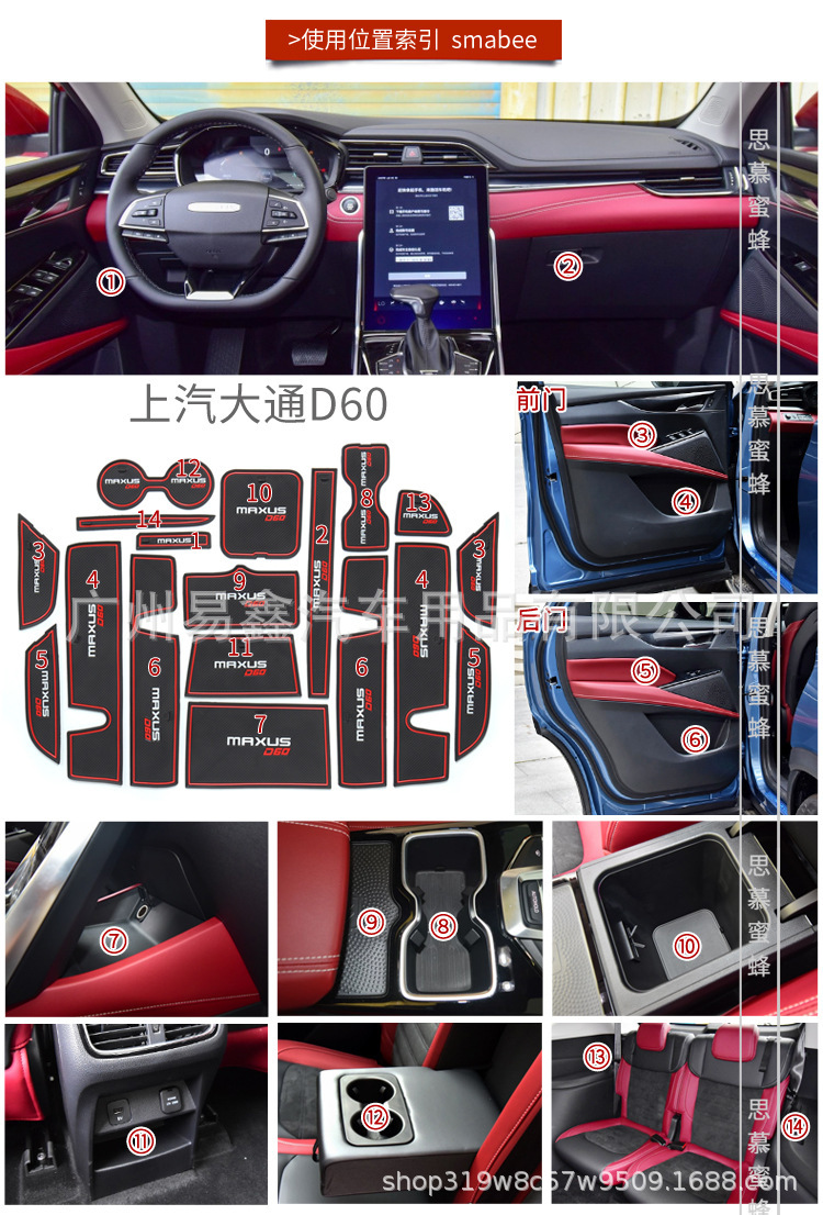 2pcs PVC Car Cup Holder & Armrest Storage Box Mats for SAIC MAXUS D60 Interior Modification Accessories