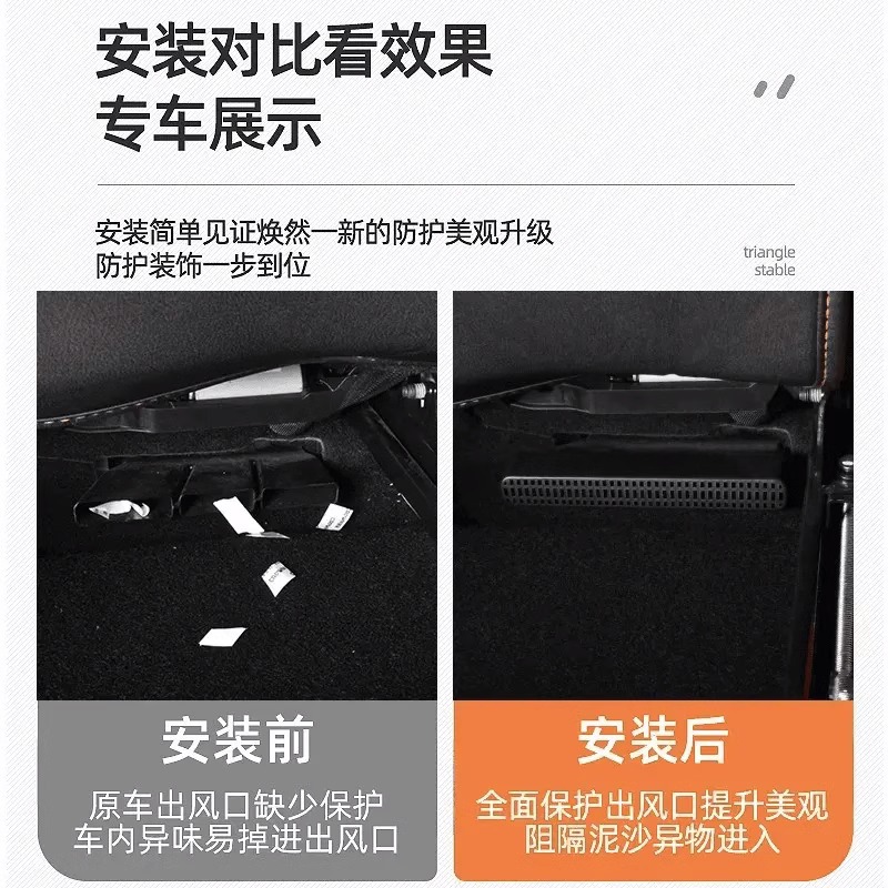 - Performance-Driven Design: This protective cover effectively prevents small items, debris, and dust from entering or blocking the rear seat air conditioning outlets, maintaining optimal airflow and cabin cleanliness.