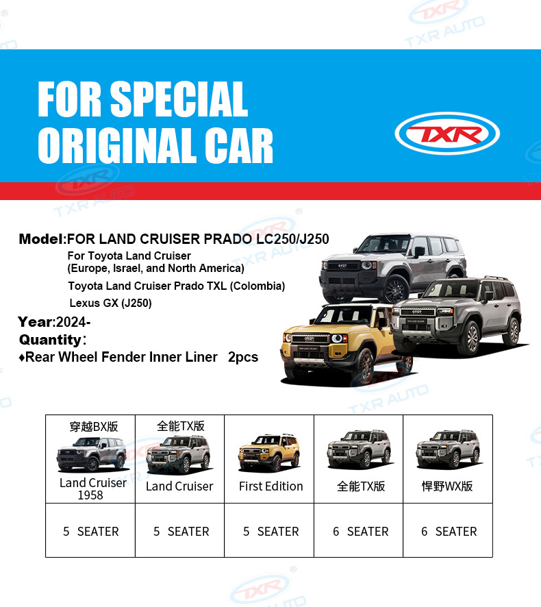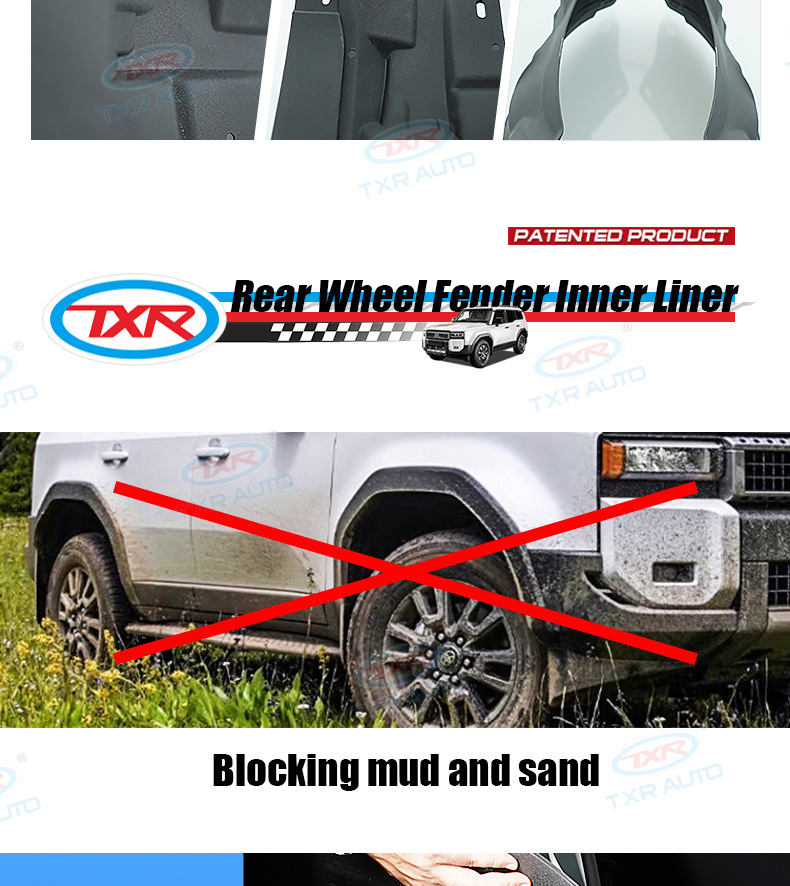 - Direct Fitment: A perfect replacement for Land Cruiser LC250 Prado 2024-Present. Designed to fit precisely in the rear wheel well, ensuring hassle-free installation and optimal protection.