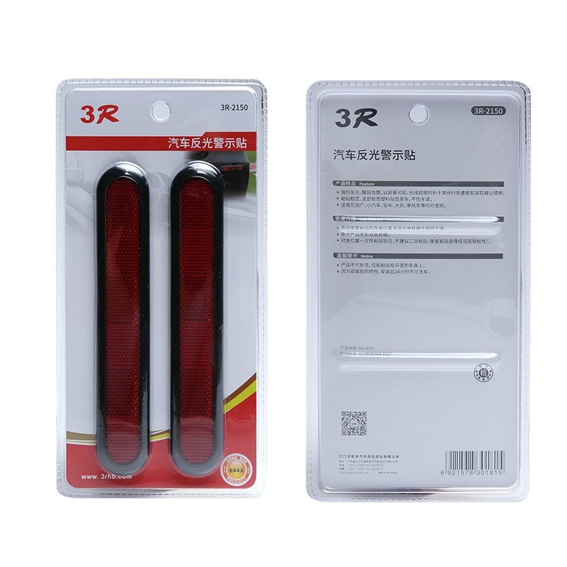 2pcs Red Adhesive Car Reflective Warning Safety Self-Adhesive Reflectors for Cars Trucks Buses Motorcycles OE# 3R-2150