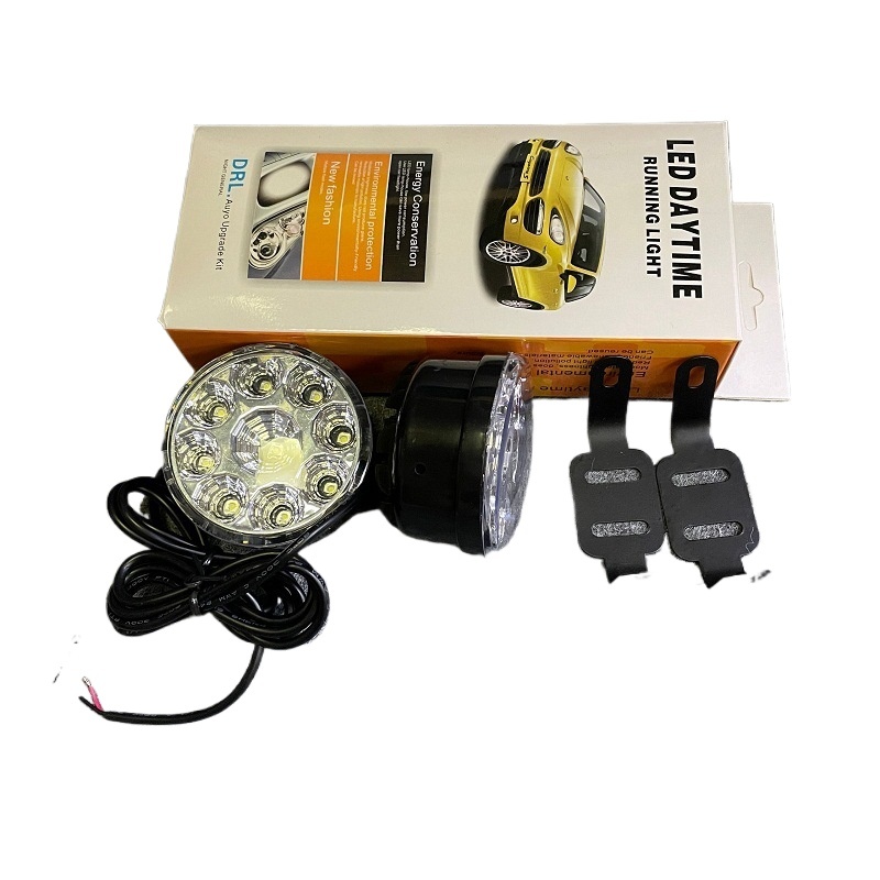 2pcs Round 9-LED Universal Car Fog Lights Driving Daytime Running Lamps for All 12V Vehicles