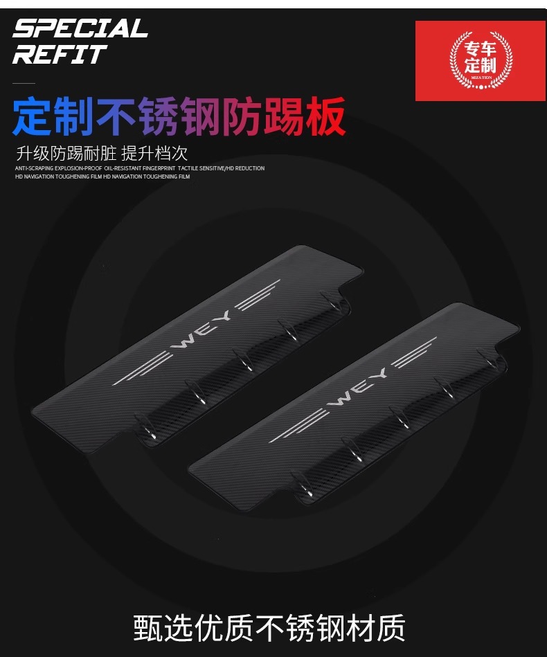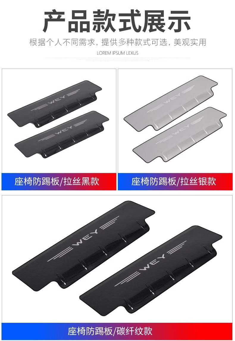 2pcs Stainless Steel Rear Seat Anti-Kick Pad Carbon Fiber Texture for WEY VV5 VV6 VV7 Mocha Macchiato