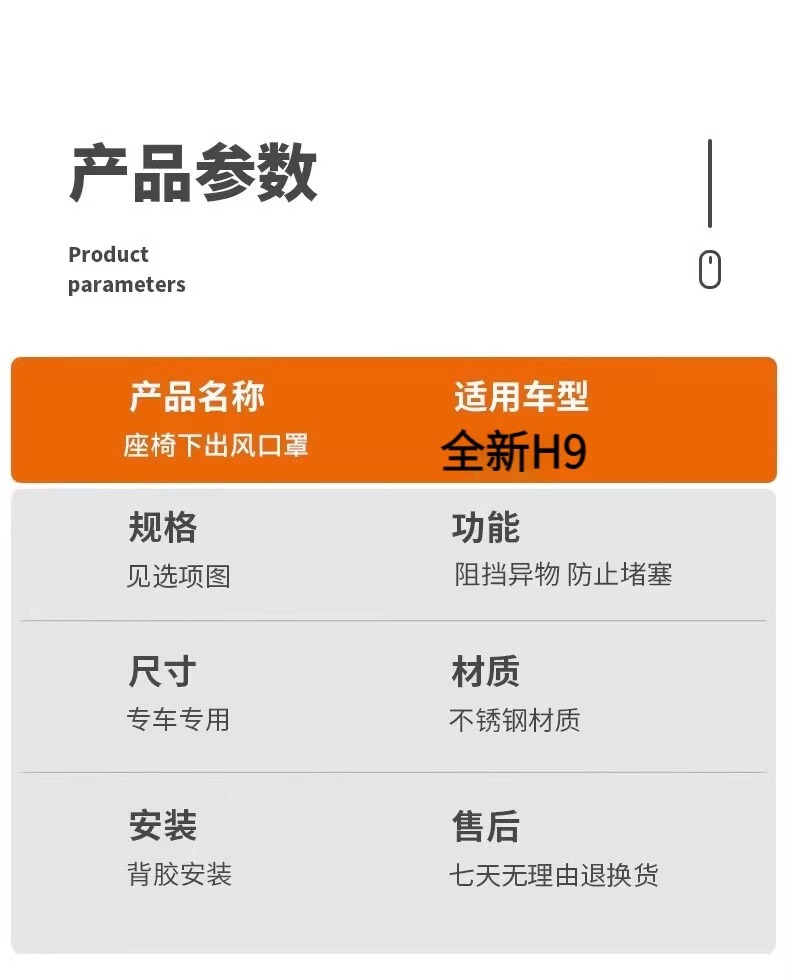 - Direct Fitment: A perfect replacement for Haval H9 Second Generation (2020-Present) models. Compatible with models whose under-seat air vent matches the one pictured.