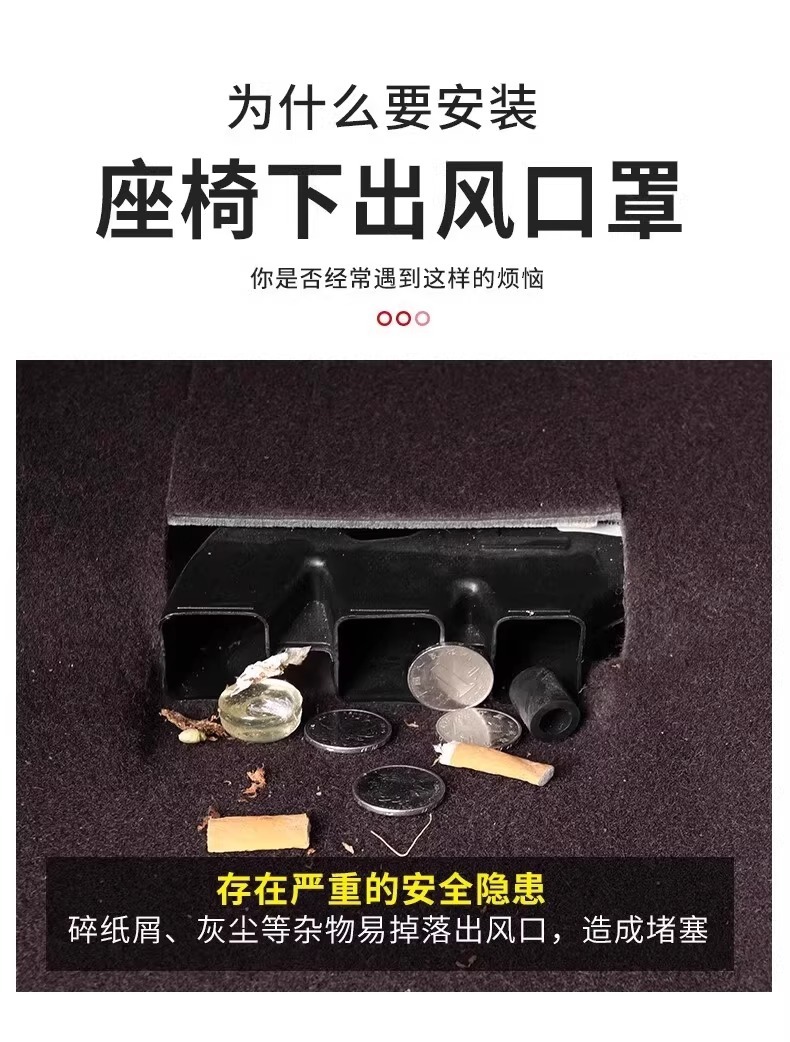 - Performance-Driven Design: Designed specifically to prevent debris, dust, and small objects from entering and blocking the under-seat air vents, maintaining optimal airflow for HVAC.