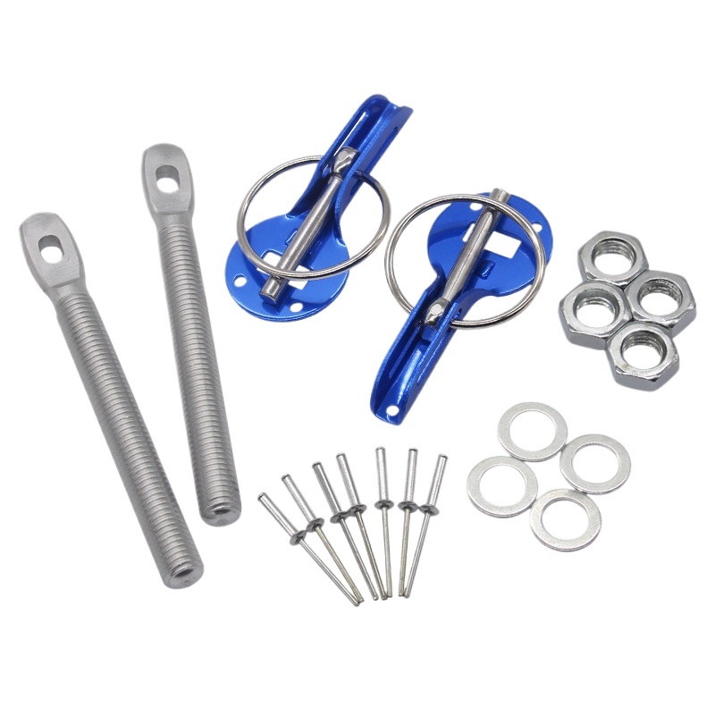 - Complete Package: Includes 2 aluminum alloy hood latches, 2 steel threaded pins, 4 nuts, 4 washers, and 6 rivets, exactly as pictured. Please verify fitment details before purchasing.