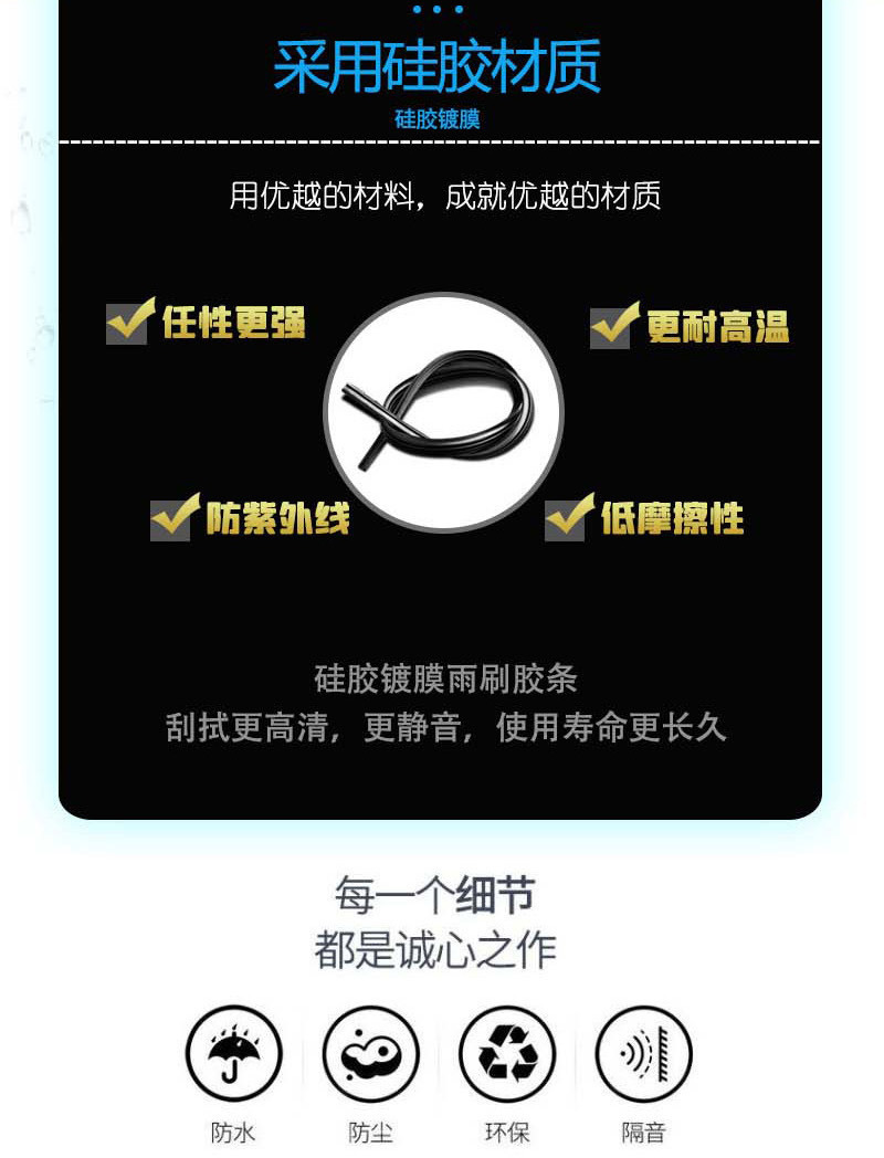 2pcs Universal Silicone Wiper Blades with Coated Surface for Clear Vision and Quiet Performance