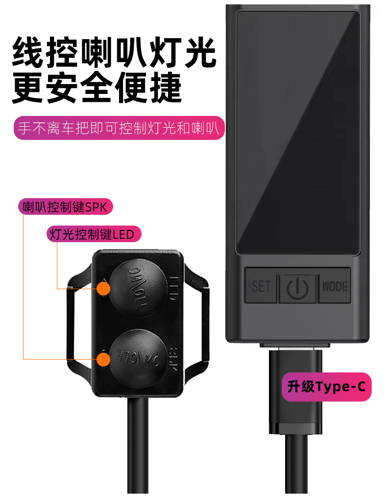 - Performance-Driven Design: Features a 3-in-1 design including a wireless bike computer for speed and mileage tracking, a high-brightness headlight, and a loud emergency horn, all powered by convenient Type-C charging.