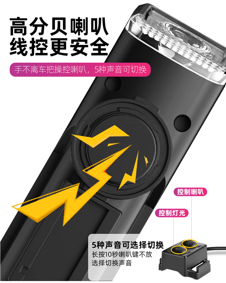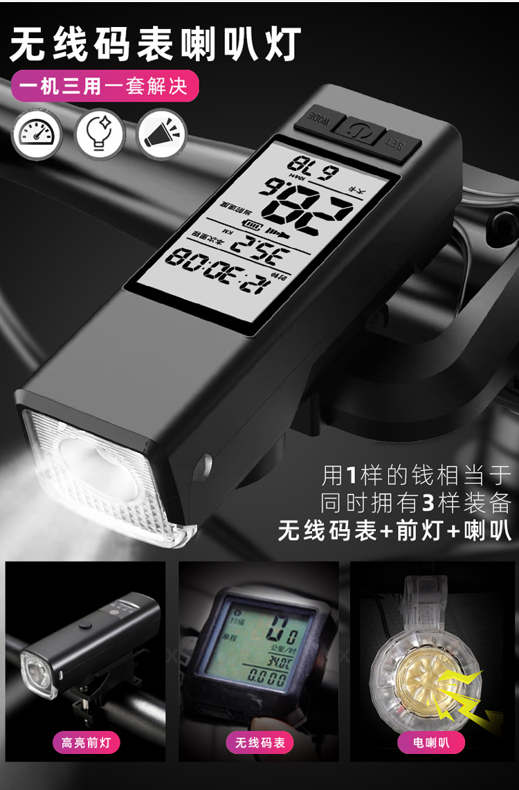 3-in-1 Wireless Bike Computer Headlight Horn Combination with Type-C Charging for Mountain Road Bike