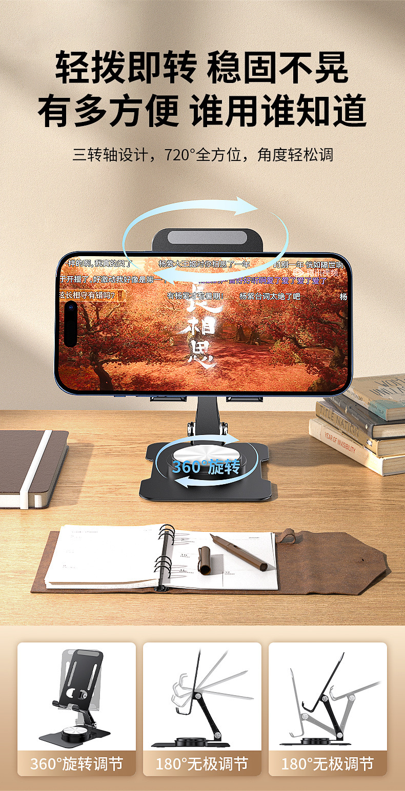 - Stable & Non-Slip Design: Equipped with a heavy-duty base and anti-slip silicone pads to prevent wobbling and protect your device from scratches.