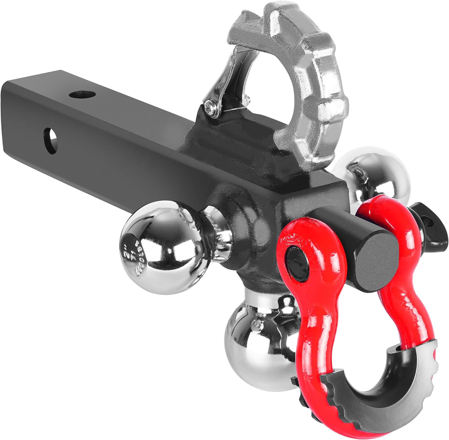 360 Degree Rotational Three Ball Trailer Hitch with Shackle for 2-inch Receiver Universal