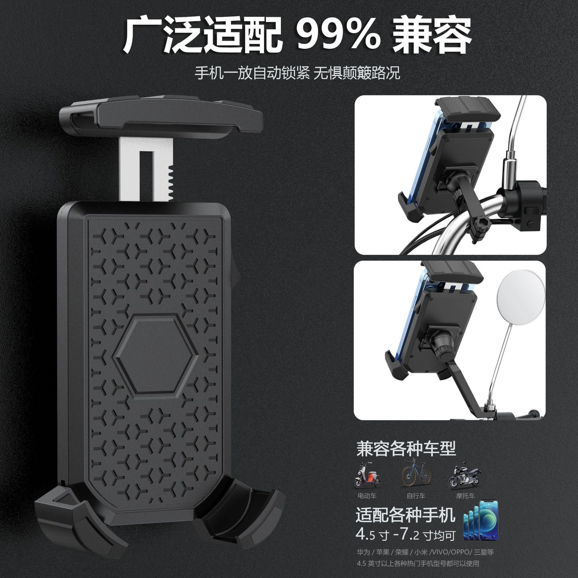 - Universal Fitment: Designed for wide compatibility, this phone holder is suitable for most bicycles, electric scooters, and motorcycles, providing a secure mount for various phone sizes.