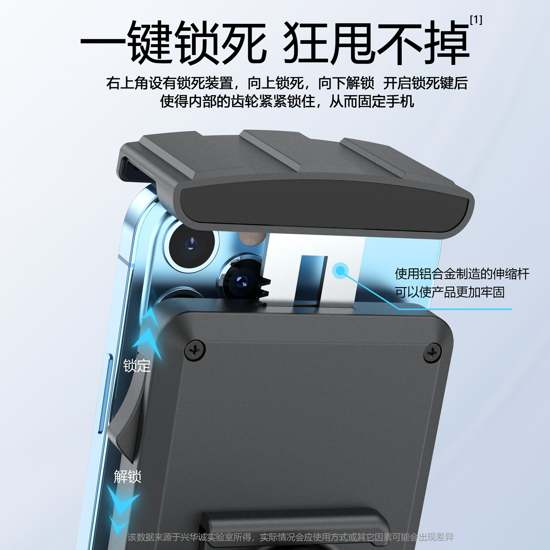 - Secure Double Locking Mechanism: Equipped with an advanced double locking system to firmly secure your device, preventing drops and wobbles even on rough terrains. Enjoy peace of mind knowing your phone is safe.
