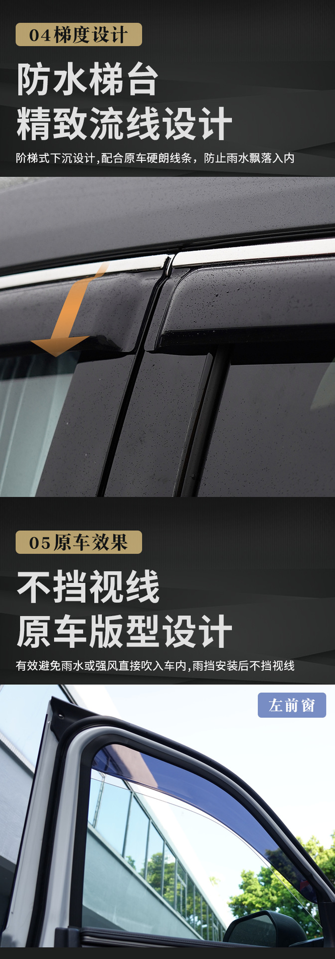 - Performance-Driven Design: Enhances airflow, reduces wind noise, and prevents rain from entering, providing a comfortable driving experience even in inclement weather.