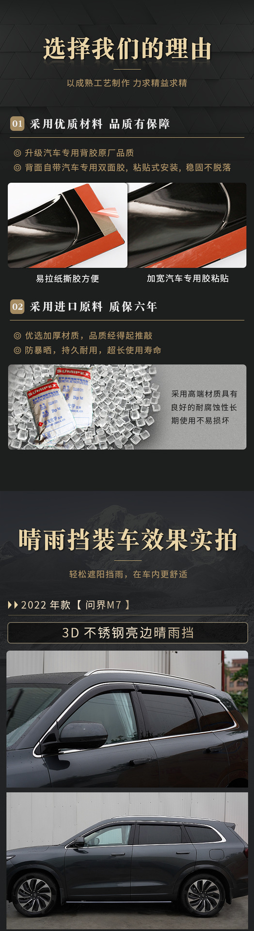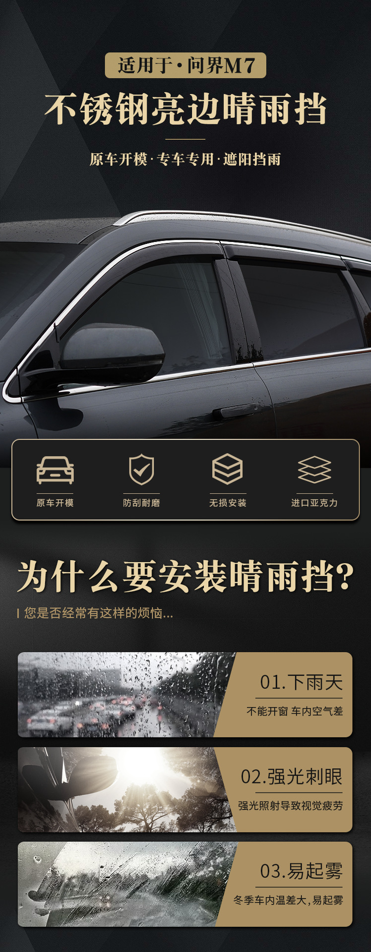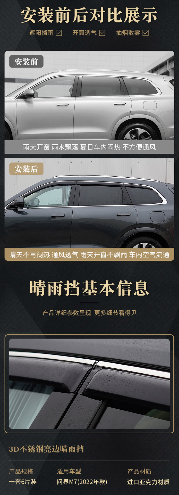 3D Stainless Steel Bright Edge Window Visors Rain Guards for AITO Wenjie M7 2022-Present (6-Piece Set)