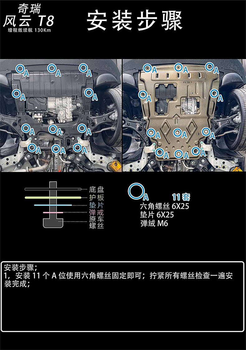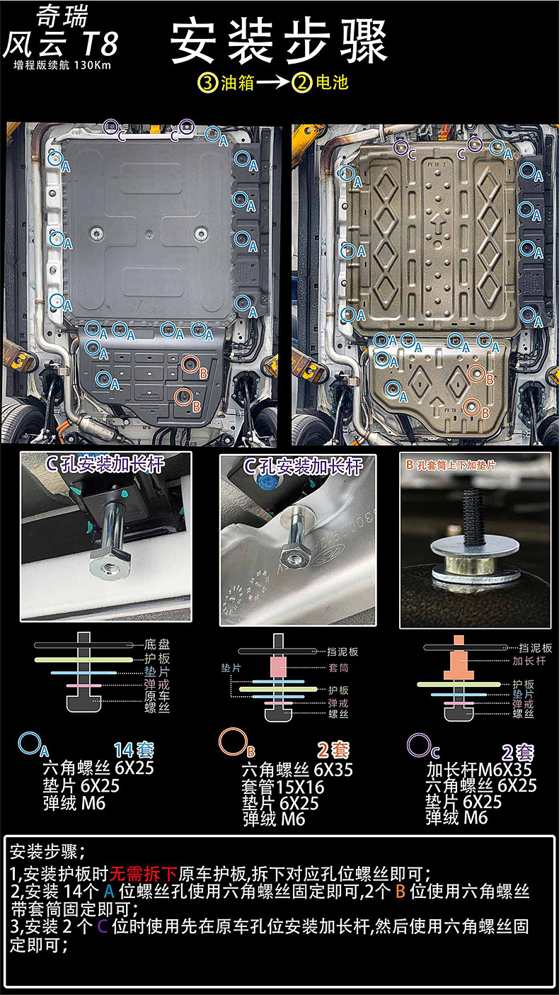 3pcs Manganese Steel Engine Battery Fuel Tank Skid Plate for Chery Fengyun T8 2025 (130KM Range)