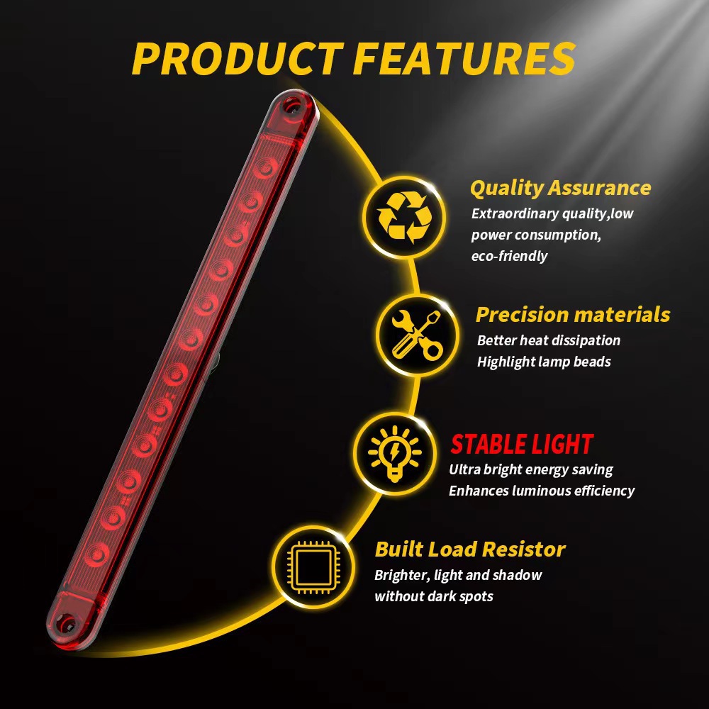 - Direct Fitment: A long strip LED light universally designed for trucks and trailers, ideal as a high-mount stop light, rear signal lamp, or tail light.