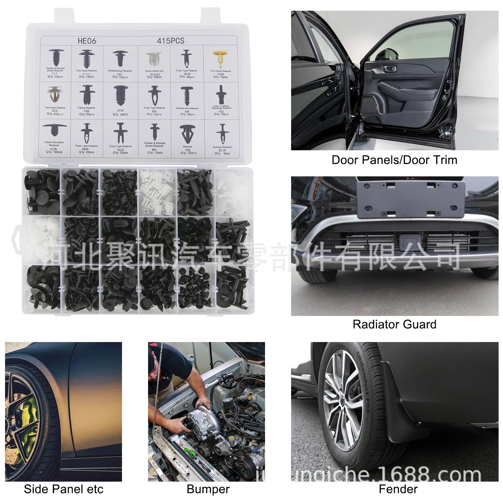 - Performance-Driven Design: Features 415 pieces of various types of plastic push-pin rivets and trim clips, designed to secure bumper, fender, door panel, and trim components effectively.