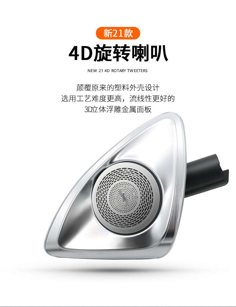 - Dynamic Visual Enhancement: Feature captivating 4D and 3D rotating tweeter designs complemented by multi-color ambient lighting, transforming your car’s cabin into a luxurious and immersive visual experience.