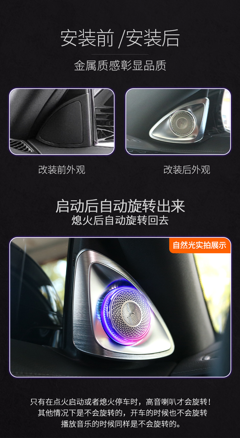 - Package & Value: Includes a set of rotating tweeters with integrated ambient lighting. Elevate your driving ambiance and enjoy a unique blend of sophisticated lighting and audio-visual artistry.