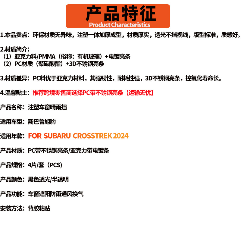 4PCS Black Semi-Transparent Acrylic Window Visors for Subaru Crosstrek 2024+