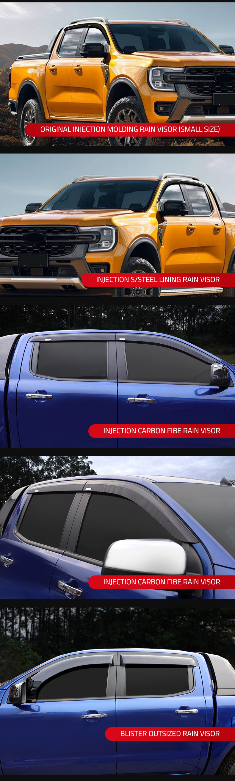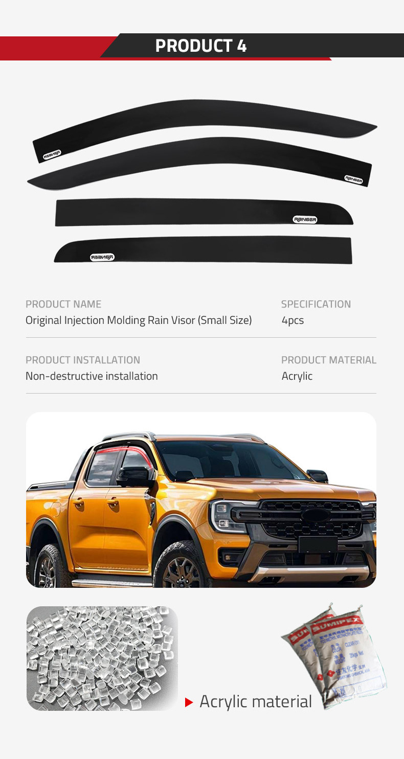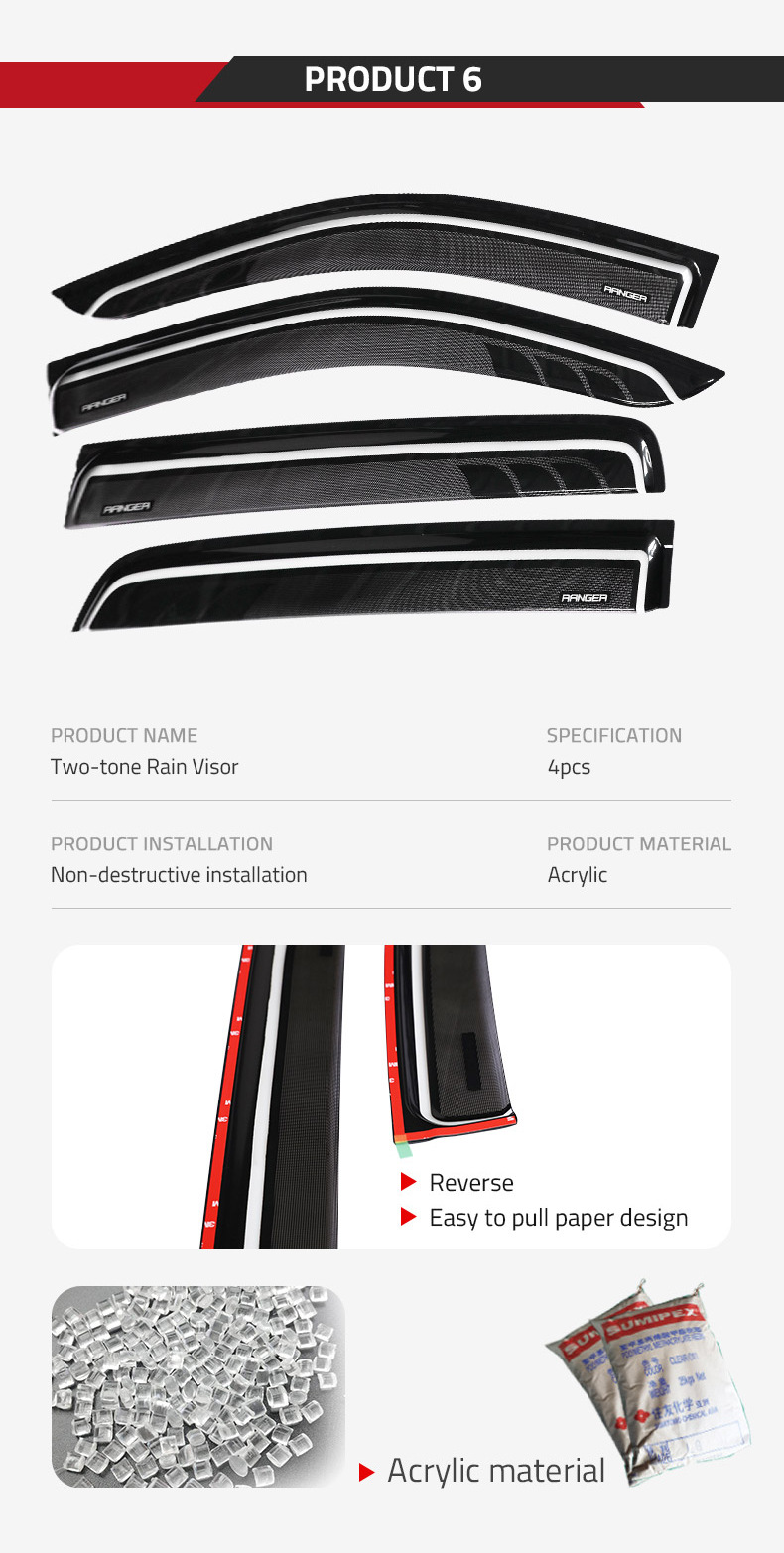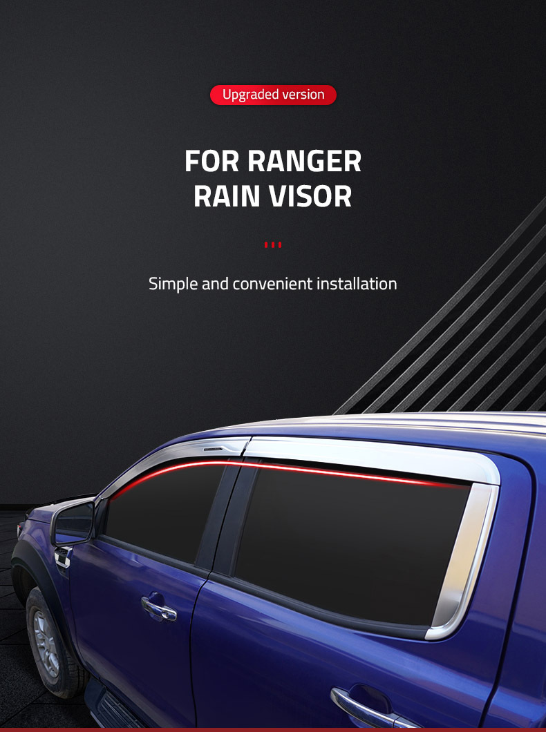 4PCS Carbon Fiber Pattern Window Visors Deflectors for Ford Ranger P375/PX T8/T7/T6 2012-2021