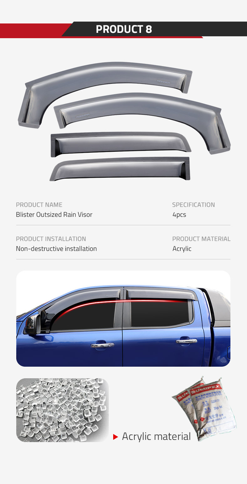 - Performance-Driven Design: Designed to optimize air circulation and reduce wind noise, allowing for comfortable driving with windows slightly open, even during rain.