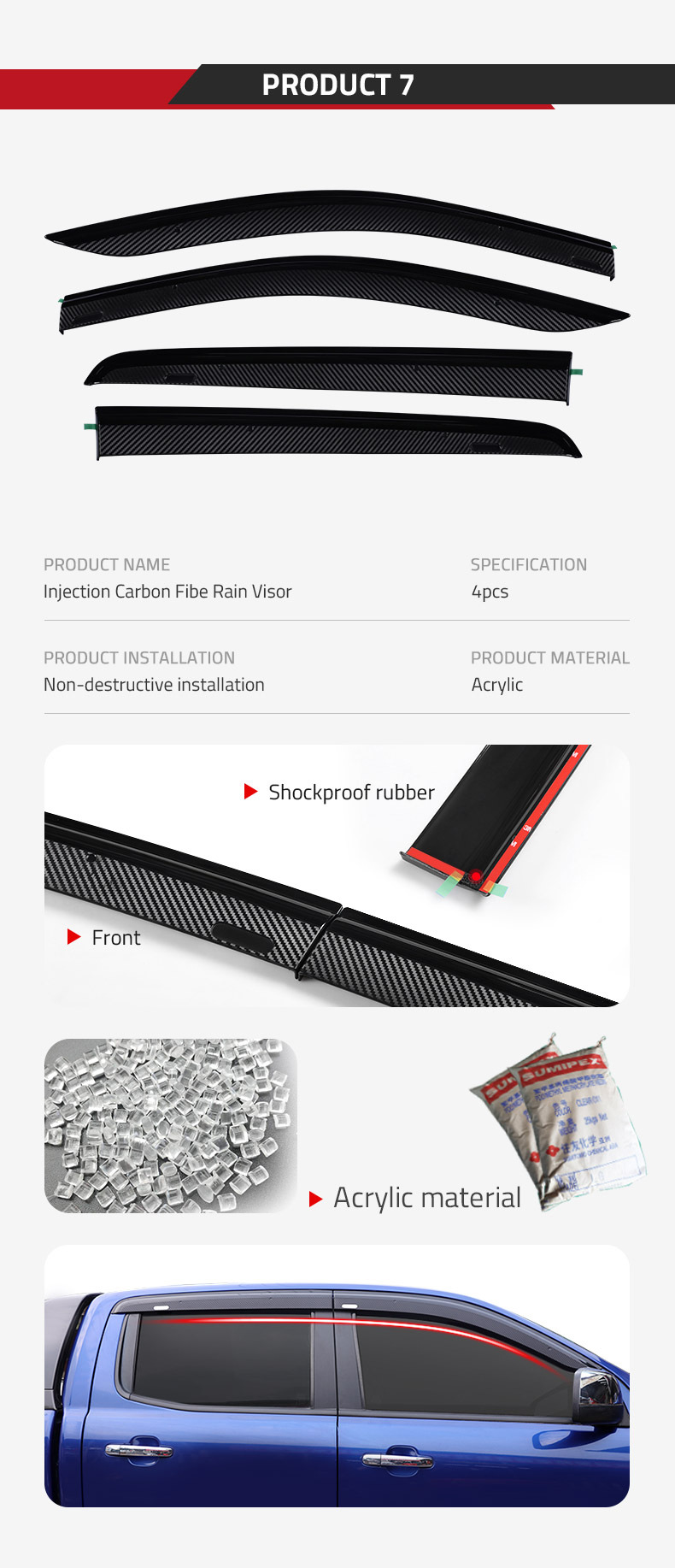 - Complete Package: Includes 4x carbon fiber pattern window deflectors, exactly as pictured. Enhance your vehicle’s aesthetic and driving comfort.