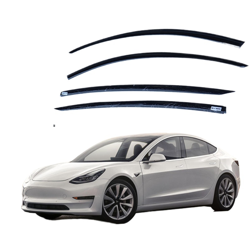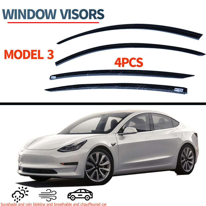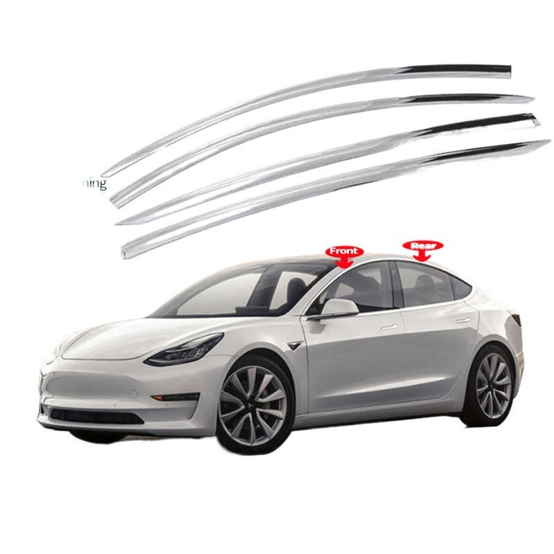 4PCS Chrome Window Visor Rain Guard Deflector for Tesla Model 3 2017+
