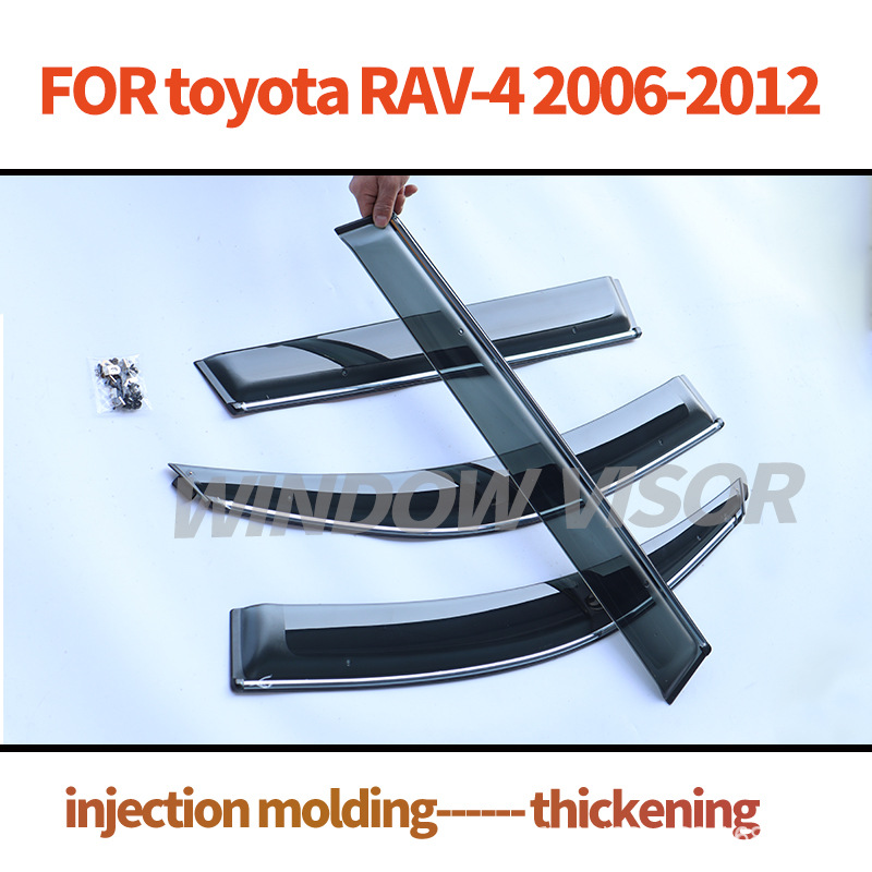 4PCS Rainproof Anti-glare Window Visor Dark Smoke Vent Shade Deflector for TOYOTA RAV4 2006-2012 LWB North American Edition