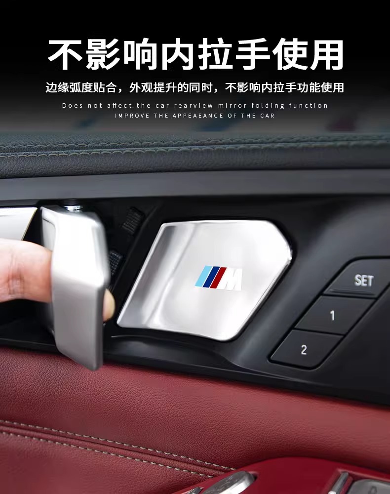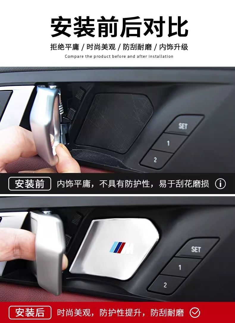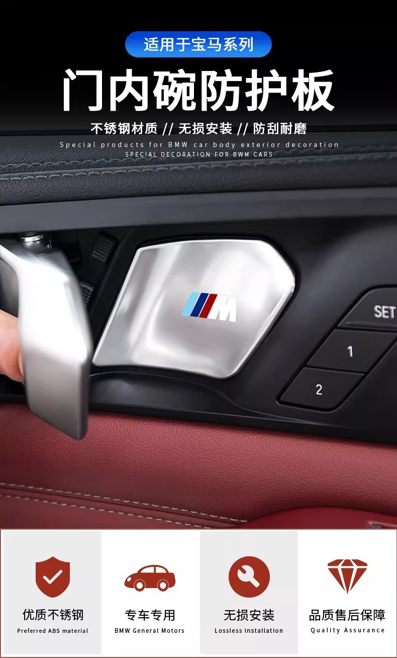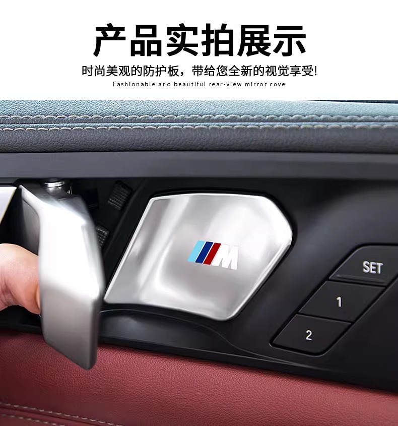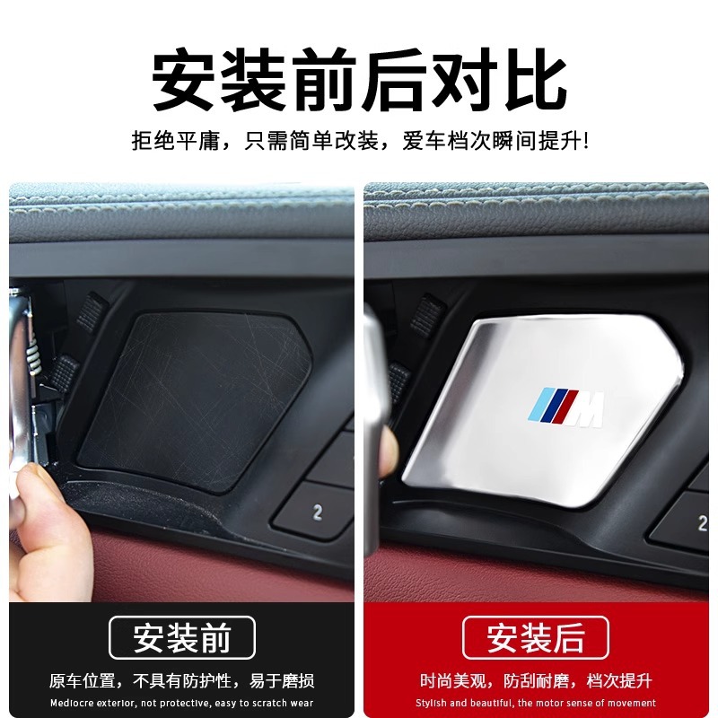 - Performance-Driven Design: Enhances the interior aesthetics with a sleek M logo design, providing protection against scratches to the original door bowl area, as visible in the product image.