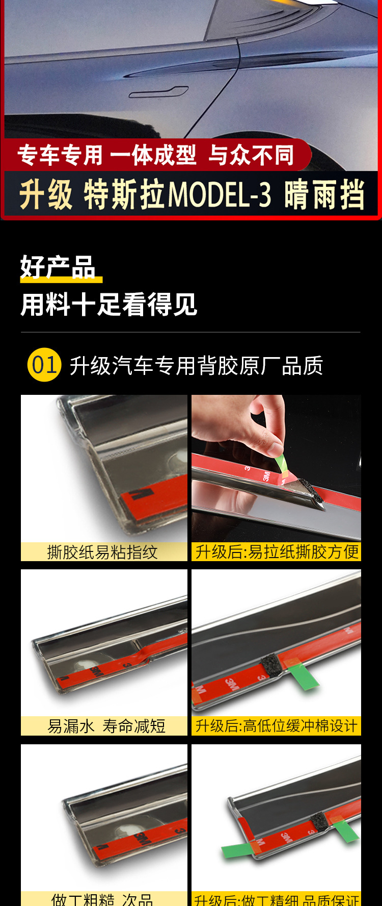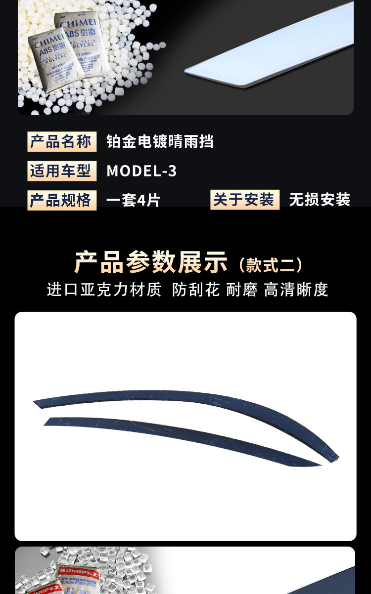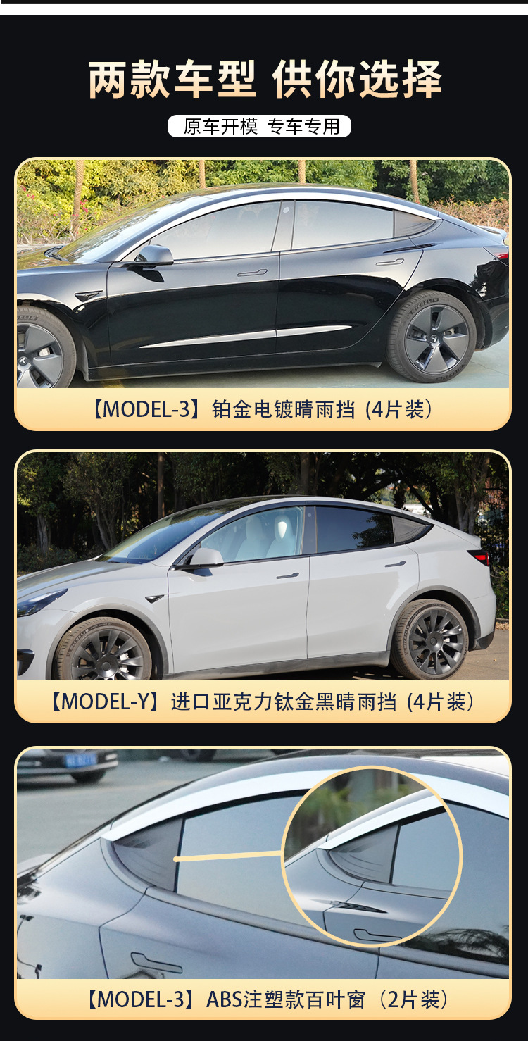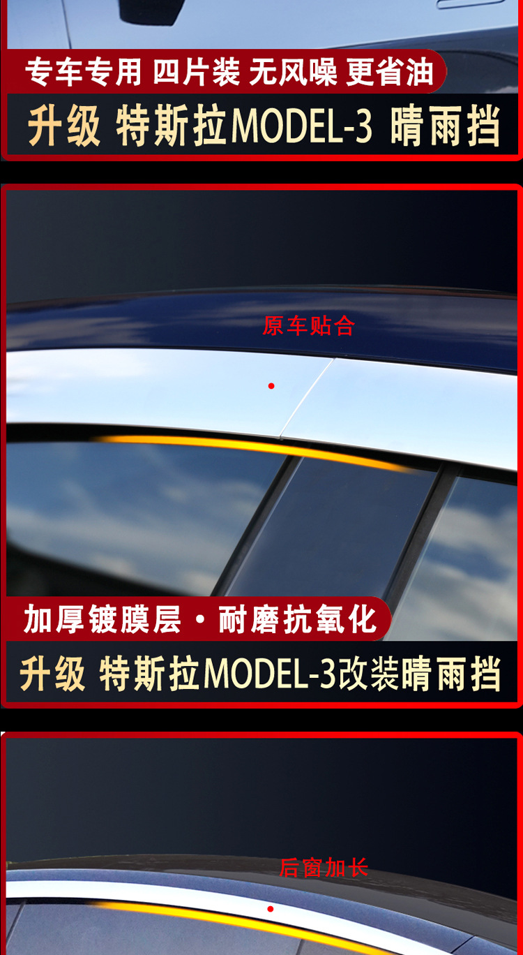 4PCS Window Deflector Rain Guards for Tesla Model 3 Model Y