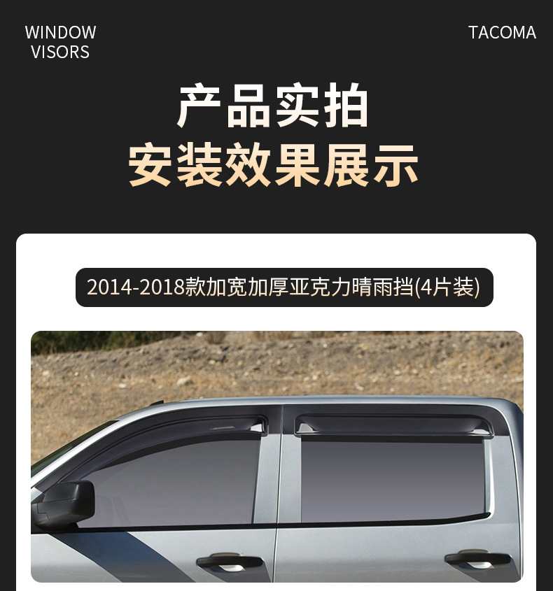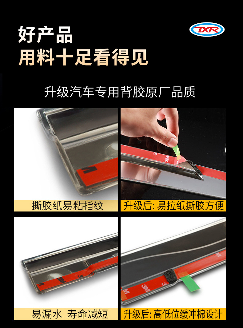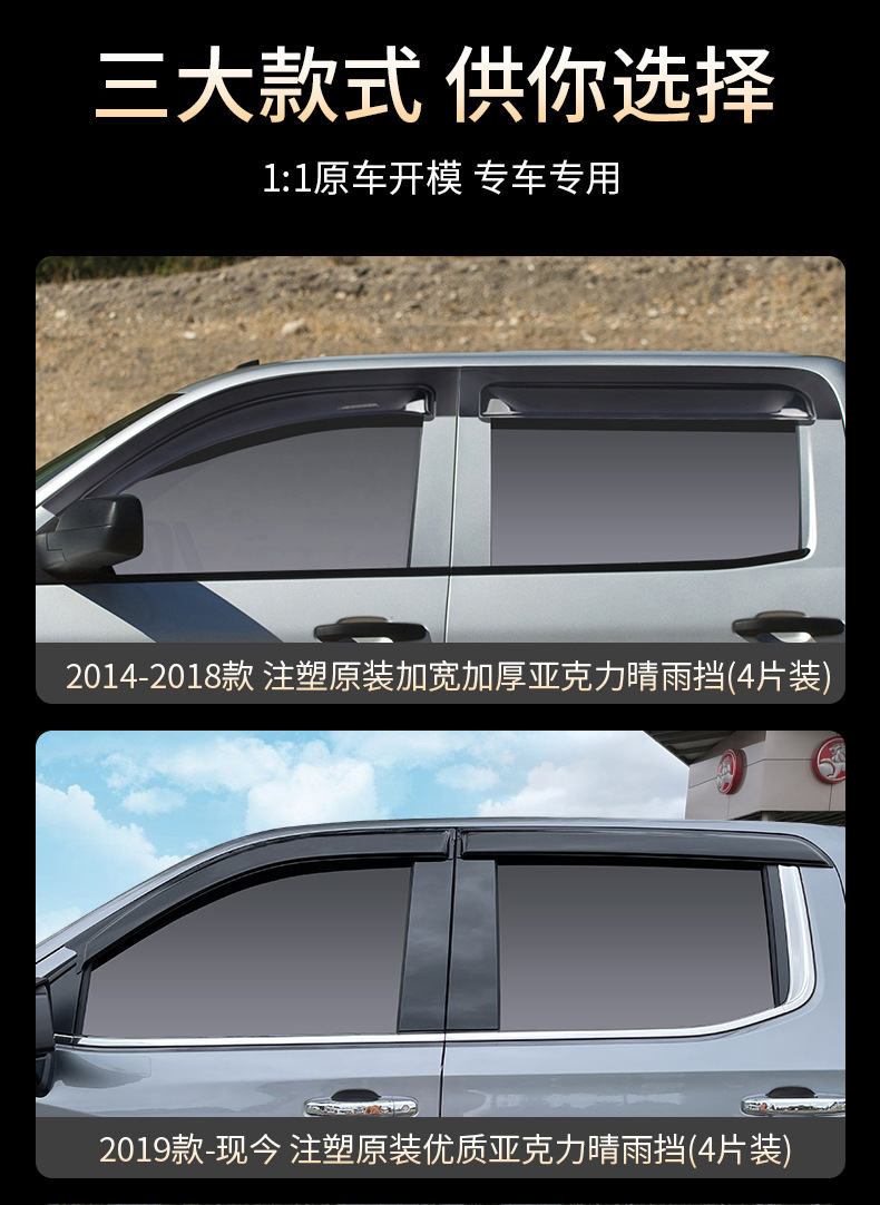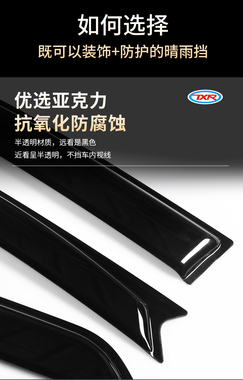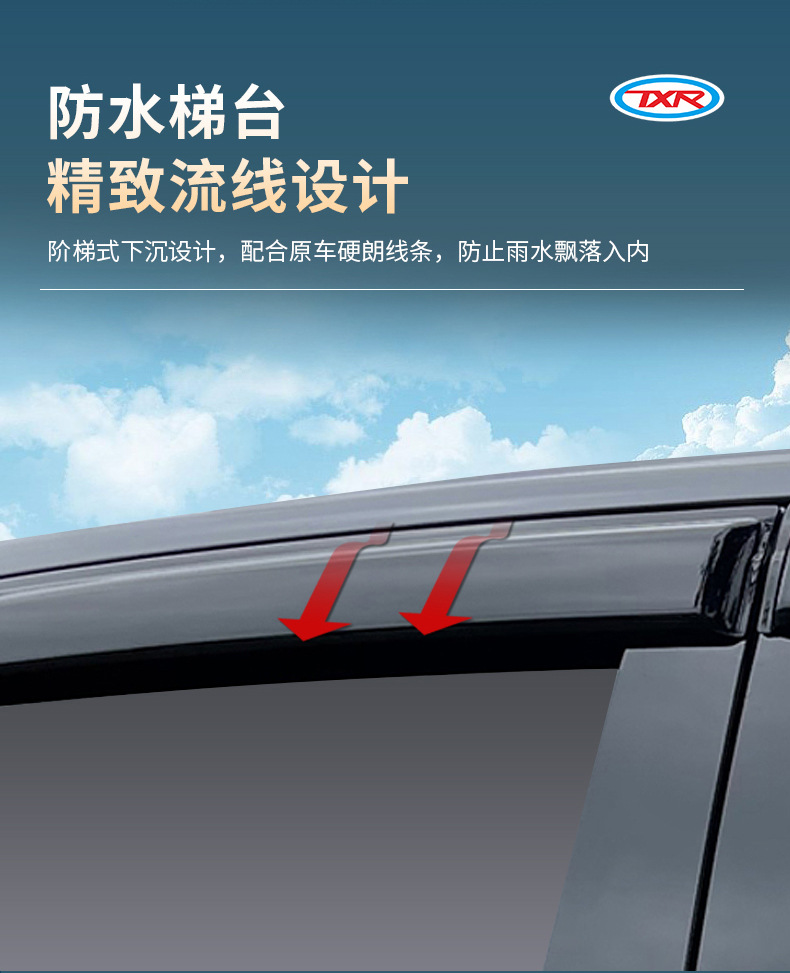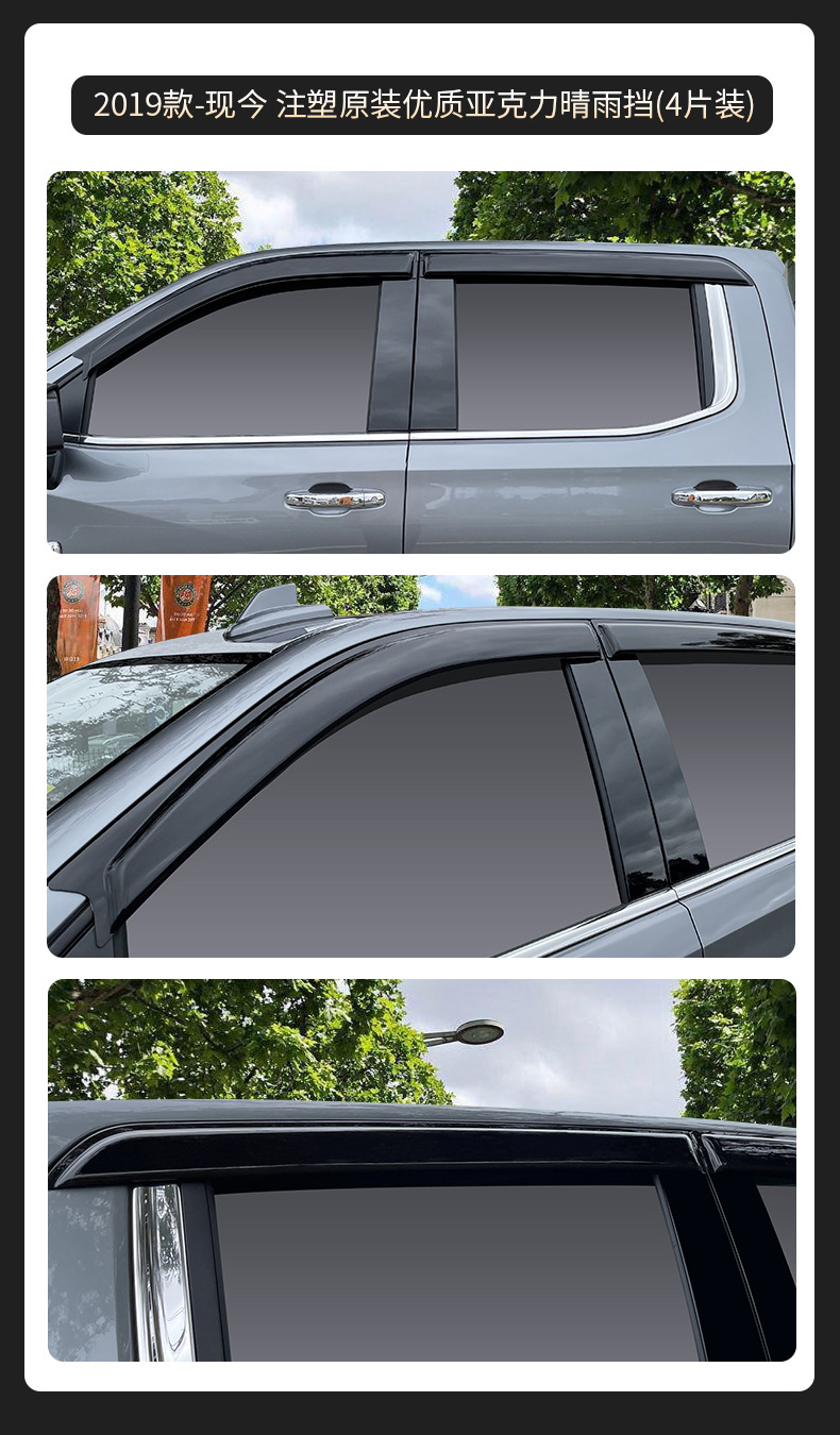 - Performance-Driven Design: Designed as an upgraded rain visor to reduce wind noise, prevent rain and snow from entering the cabin, and allow for fresh air circulation.