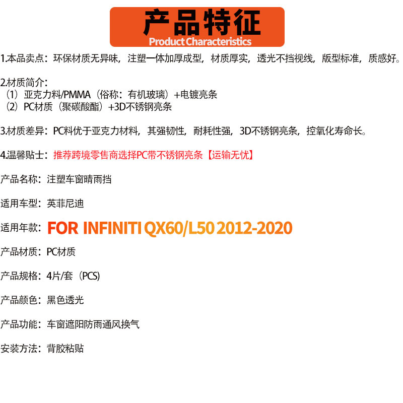 - Direct Fitment: A perfect replacement for your vehicle’s window visors. Compatible with Infiniti QX60 L50 2012-2020.