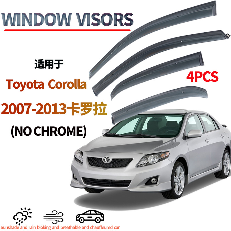 4PCS Window Visors Rain Guard Deflector for Toyota Corolla 2007-2013 No Chrome