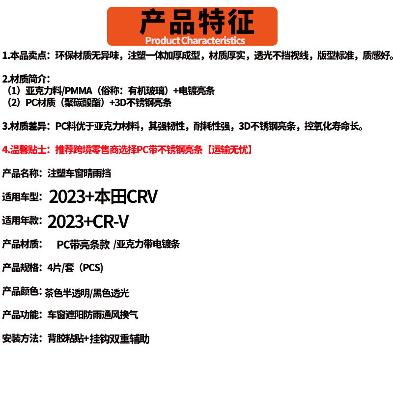 - Performance-Driven Design: Enhances driving comfort by deflecting rain and sun, improving ventilation, and reducing wind noise. Allows windows to be slightly open even in rain.