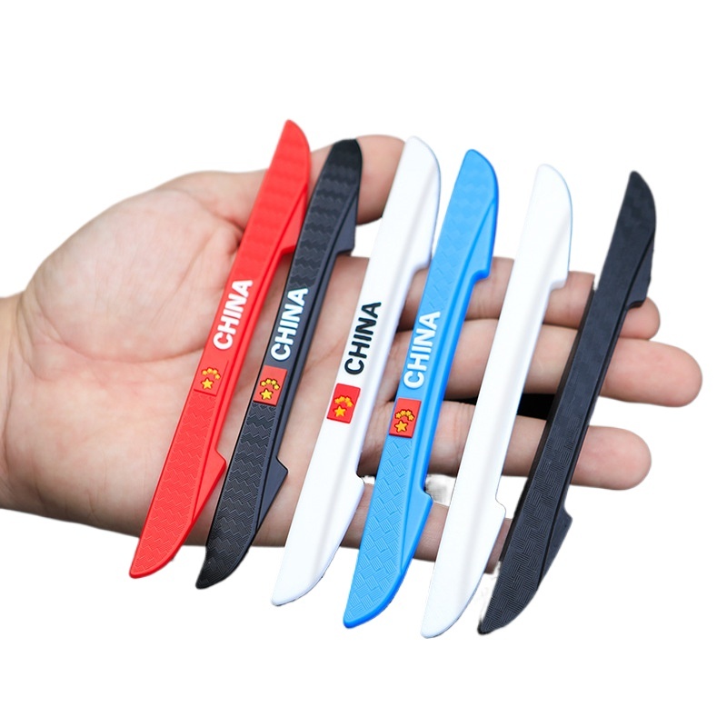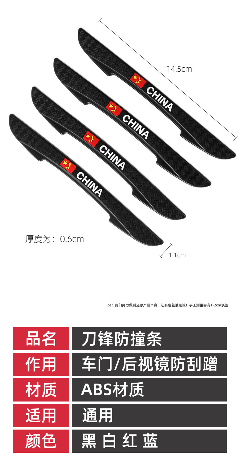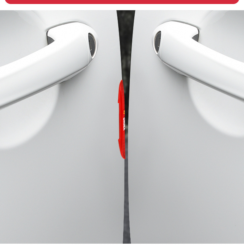 - Complete Package: Includes 4x car door anti-collision strips, exactly as pictured in assorted colors and patterns (China Flag, solid black, solid white, solid red, solid blue are visible).