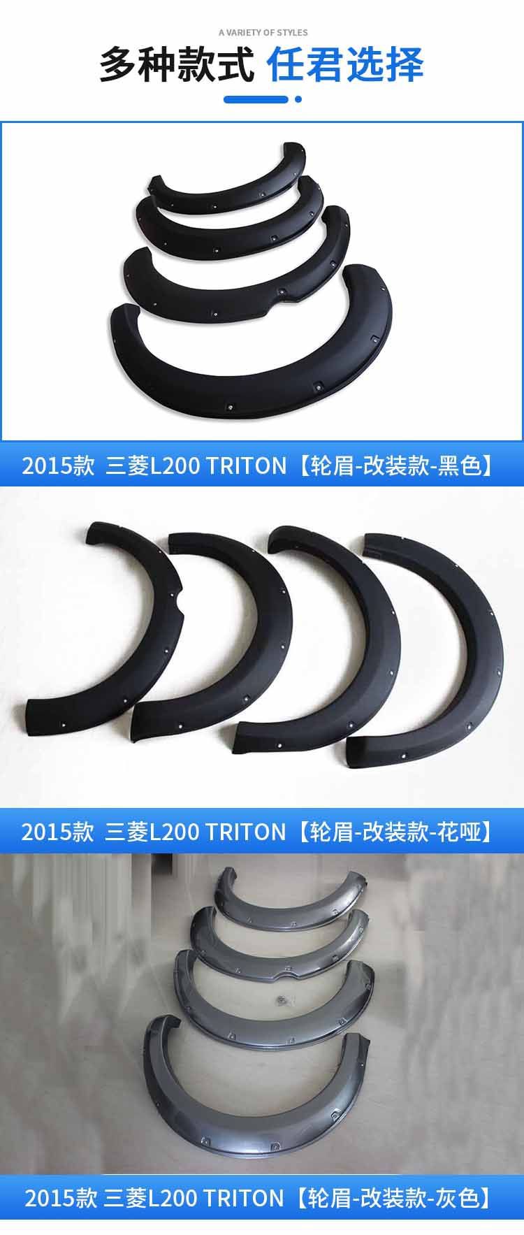- Direct Fitment: A perfect replacement fender flares for Mitsubishi L200 Triton 2015-2018 models, enhancing the vehicle’s appearance and providing protection.