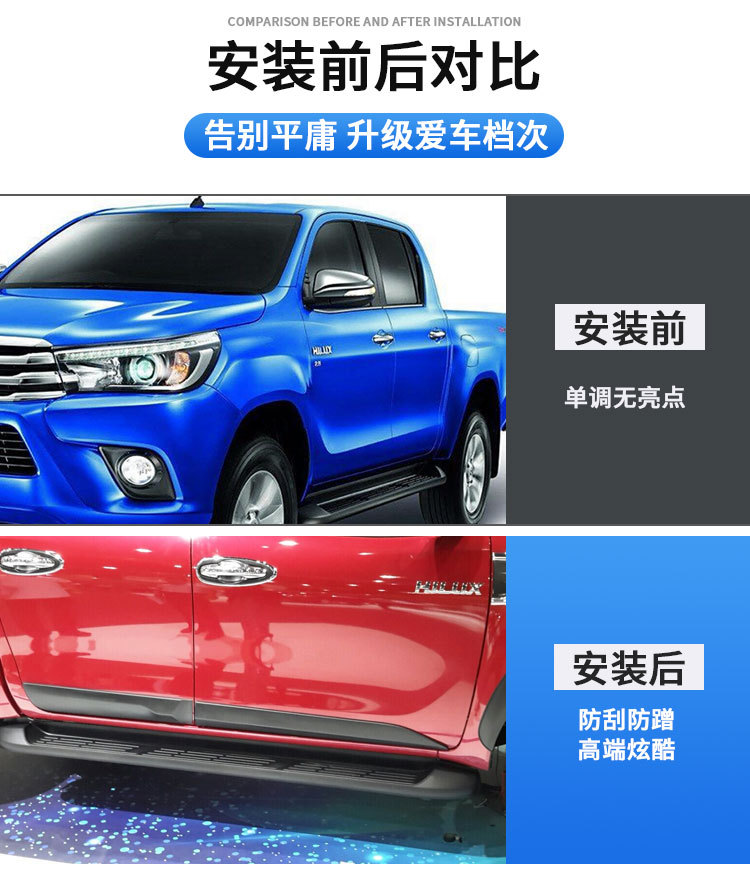 - Performance-Driven Design: Designed for effective body protection against scratches and minor impacts, while enhancing the aesthetic appeal of your pickup truck.